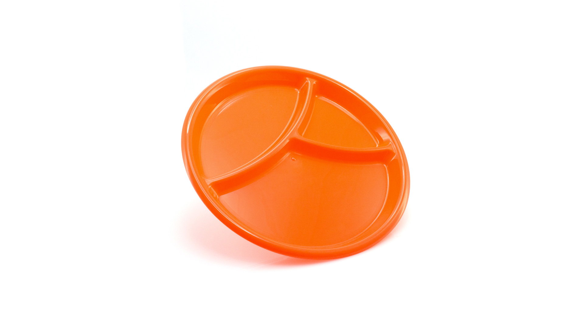 Aperitif-Teller aus widerstandsfähigem Polypropylen (PP) in verschiedenen Farben. Mit Unterteilung in drei Bereiche.