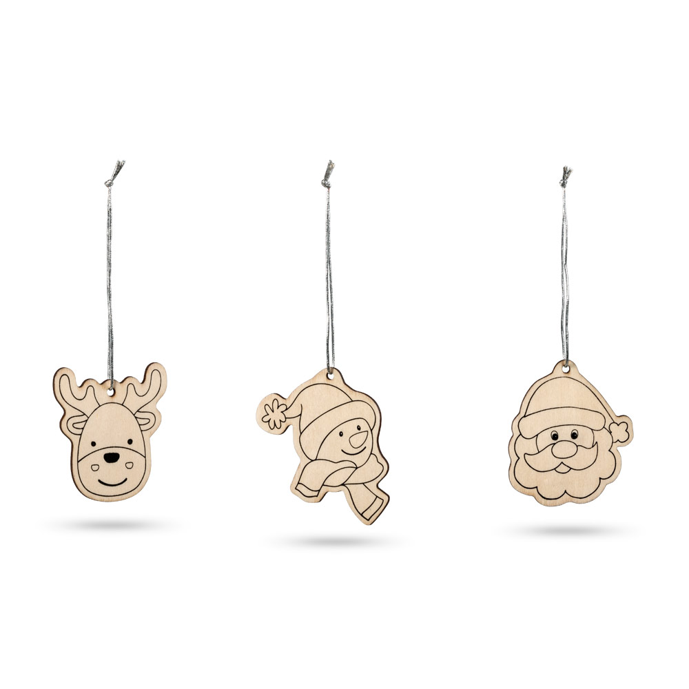 Malset aus Holz. Inklusive 3 Weihnachtsdekorationen mit Ausmalbildern, Bändern zum Aufhängen und 4 Buntstiften. Da das Produkt aus natürlichen Materialien hergestellt wird, können Farbe des Produkts sowie das Druckergebnis von Produkt zu Produkt unterschiedlich sein. 122 x 94 x 14 mm