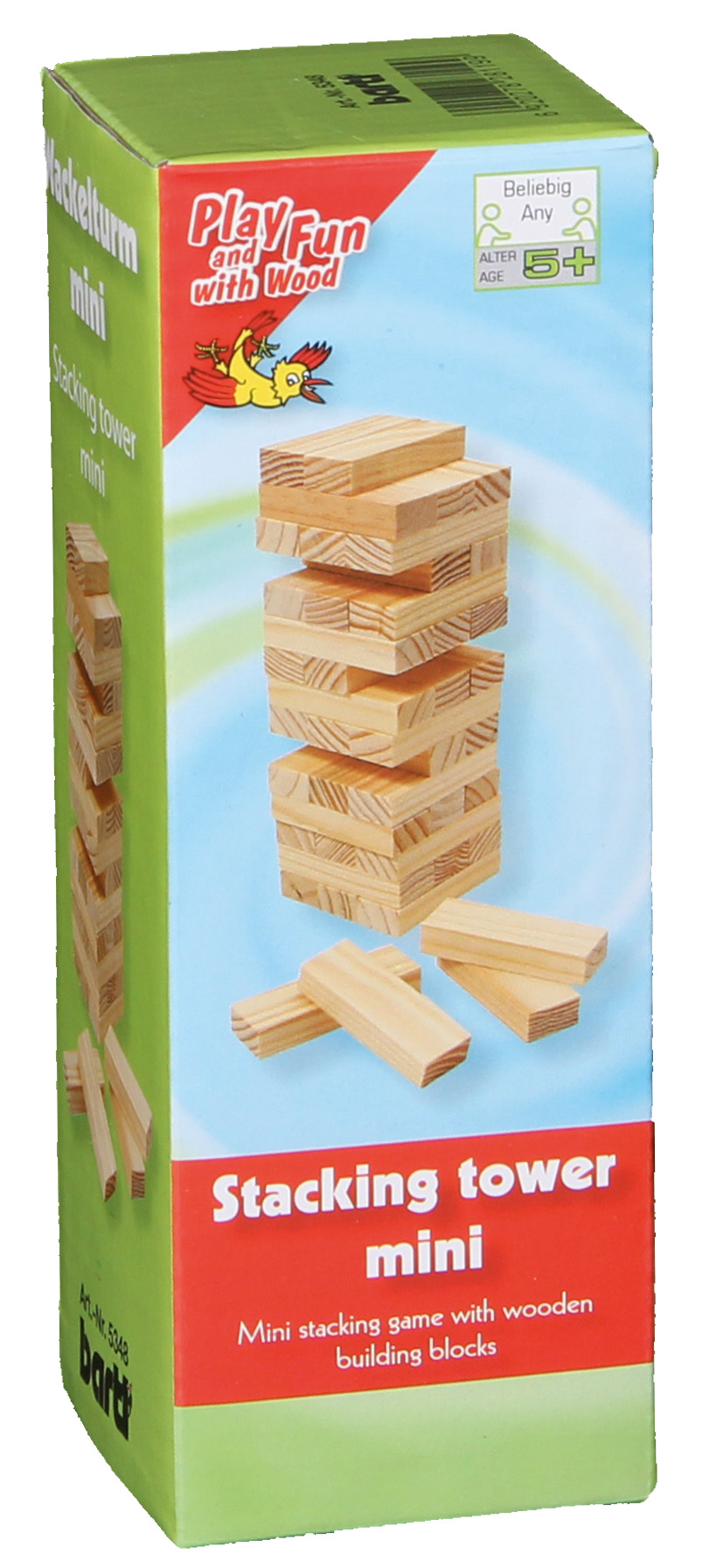 Spannendes Geschicklichkeitsspiel für Kinder ab 5 Jahren. Wer baut den höchsten Turm? Einfach unten Bausteine rausnehmen und oben wieder draufsetzen, ohne dass der Turm einstürzt. 45 Teile. Höhe: 15 cm. Bausteingröße: 4,8 x 1,5 x 1 cm.