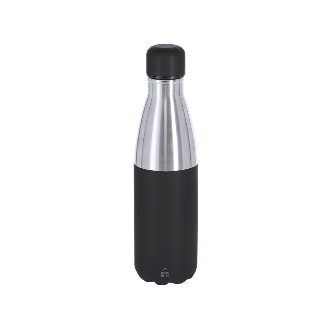 Thermoflasche mit 550 ml Kapazität, hergestellt aus recyceltem Edelstahl mit doppelter Wand. Ihr Design kombiniert einen Körper mit silbernem Finish mit einem Schraubverschluss und einer dazu passenden matten Basis. BPA-frei. Mit dem Markenzeichen recycelter Edelstahl. Edelstahl ist eines der gefragtesten Materialien und kann fast überall gefunden werden, von Alltagsprodukten bis hin zu großen Konstruktionen. Mit unzähligen Eigenschaften, darunter Haltbarkeit und ein hohes Maß an Wiederverwendbarkeit, macht es zu einer geschätzten Alternative in nachhaltigen Lösungen. Richtig behandelt, ermöglicht es die Gewinnung neuer Ressourcen mit unendlichen Nutzungsmöglichkeiten.