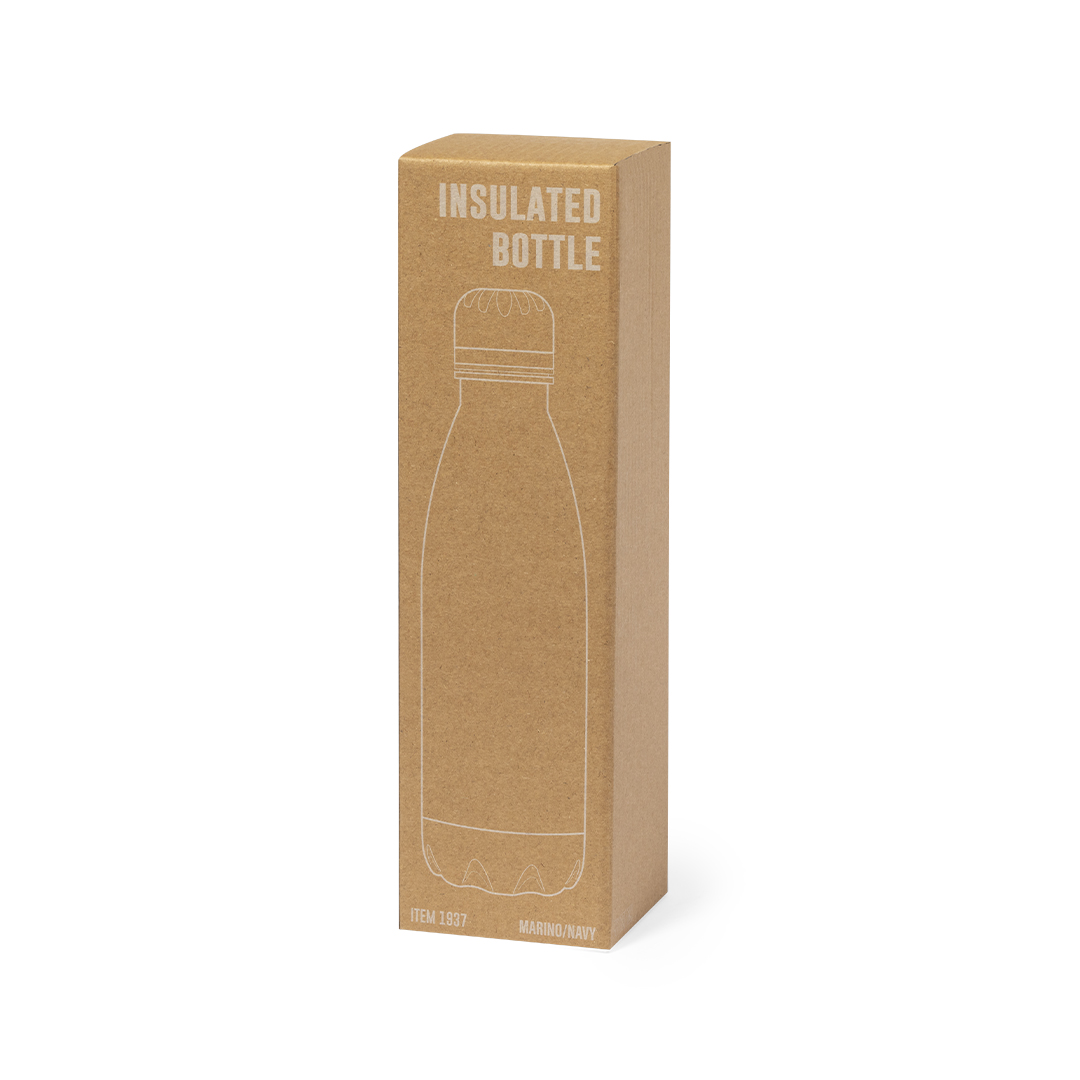 Thermosflasche mit einem Fassungsvermögen von 550 ml, aus doppelwandigem Edelstahl. Mit Schraubverschluss, BPA-frei und in einer breiten Palette von satinierten Farben erhältlich. Präsentiert in individueller Kraft-Design-Box. Gebrauchsanweisung in Englisch und Spanisch erhältlich.