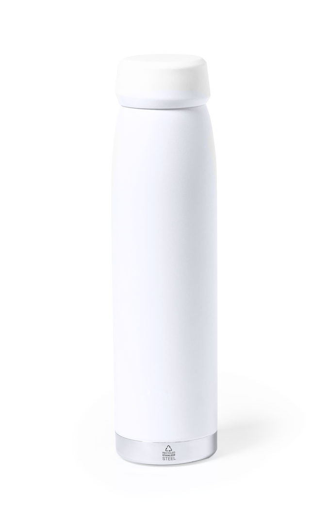 Thermoflasche mit 380 ml Fassungsvermögen, hergestellt aus recyceltem, doppelwandigem Edelstahl, mit passendem Schraubverschluss und silbernem Boden. Erhältlich in einer großen Auswahl an Satinfarben, BPA-frei und in einer individuellen Box im Kraftpapier-Design präsentiert. Stahl ist eines der gefragtesten Materialien und kommt fast überall vor, von Alltagsprodukten bis hin zu Großkonstruktionen. Mit unzähligen Eigenschaften, darunter Langlebigkeit und einer hohen Wiederverwendbarkeit, ist es eine vielgeschätzte Alternative für nachhaltige Lösungen. Bei richtiger Behandlung können neue Ressourcen von unbegrenztem Nutzen gewonnen werden.