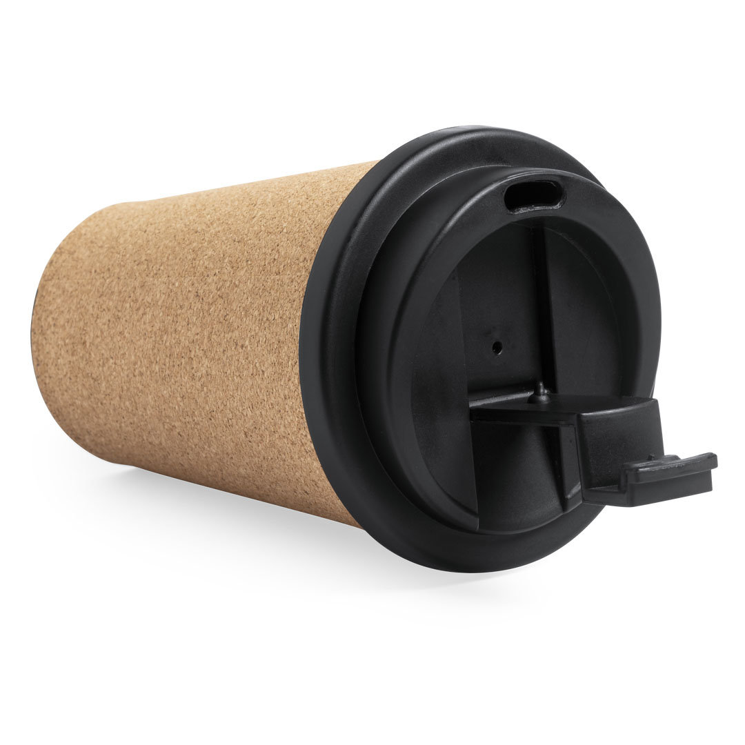 Thermobecher aus Naturkork mit 350 ml Fassungsvermögen. Spender und leicht zu öffnender Deckel aus PP, BPA-frei. Es ist ideal für Ihren Schreibtisch, Tisch oder jede andere Oberfläche, auf der Sie in Ruhe Ihr Lieblingsgetränk genießen können.