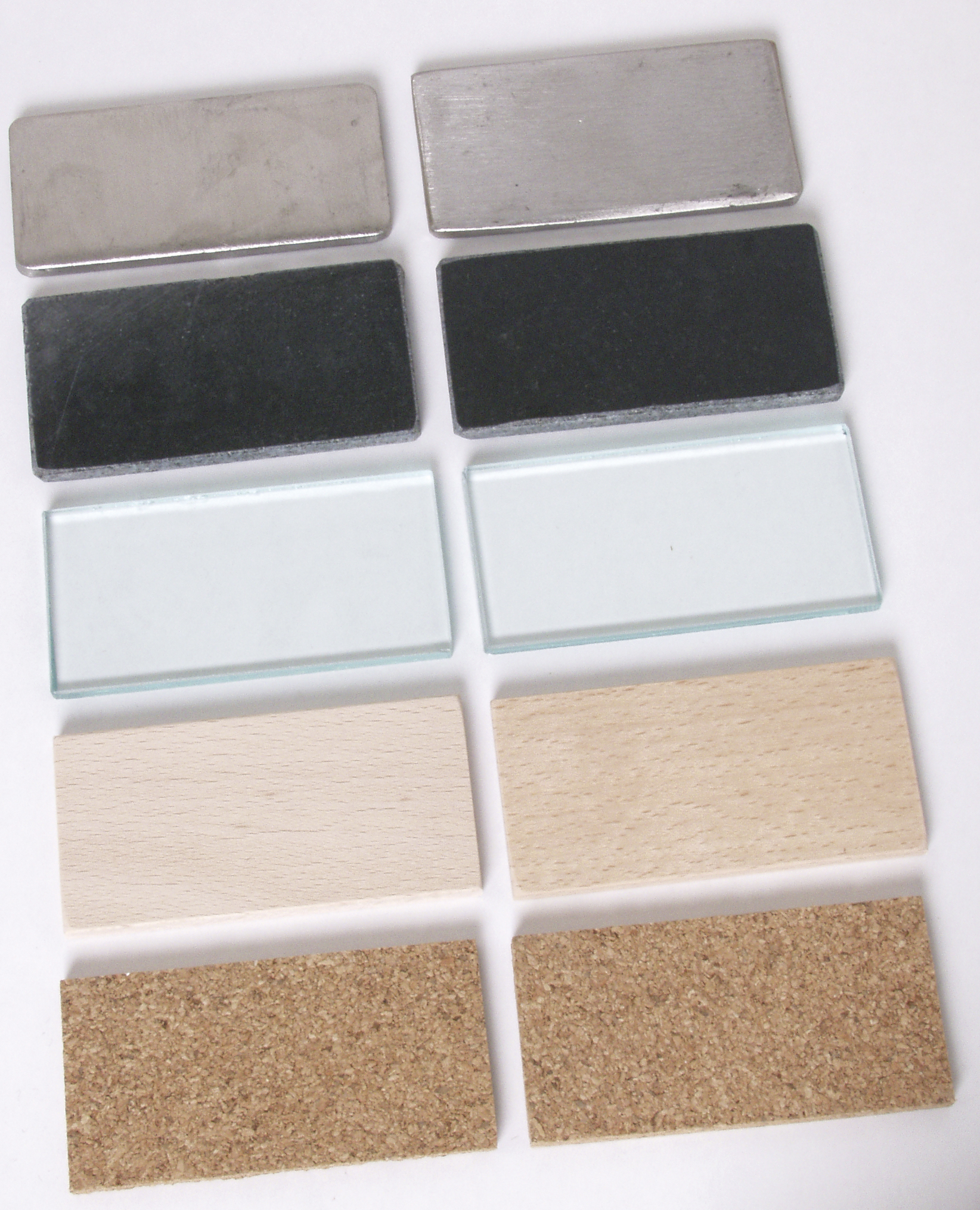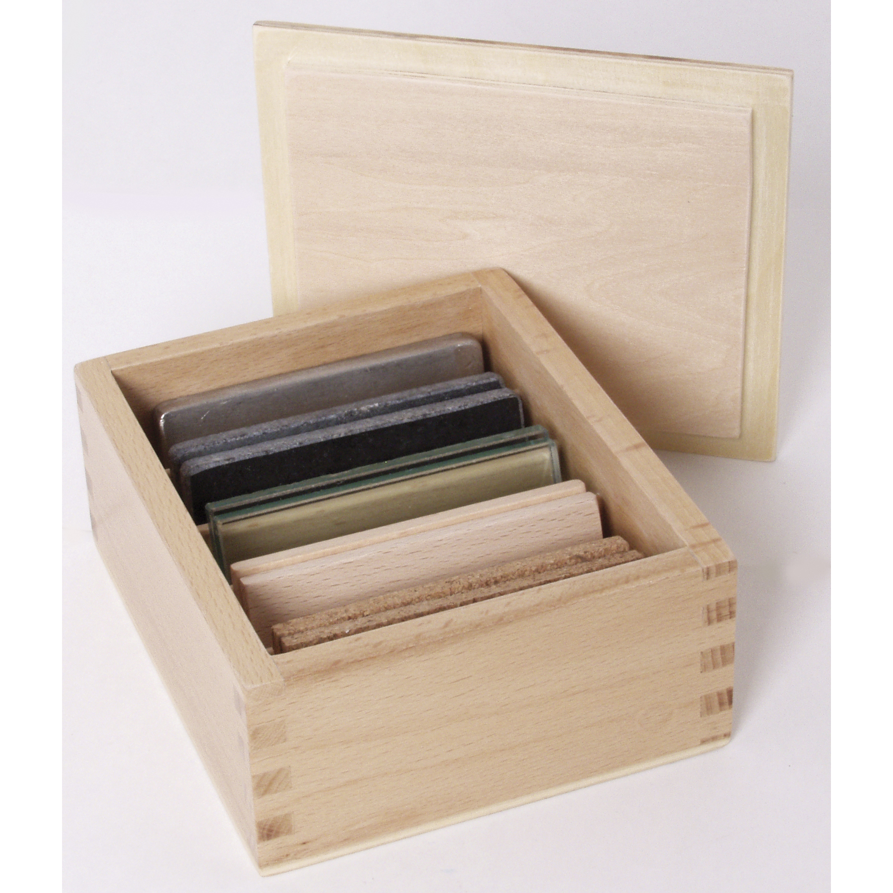 Ein Holzkasten mit fünf Fächern und Deckel enthält zehn Wärmeleittäfelchen, von denen jeweils zwei identisch sind. Die Täfelchen sind alle gleich groß. Sie unterscheiden sich im Material: Kork, Holz, Glas, Marmor und Metall. Jedes der Materialien vermittelt bei gleicher Temperatur, durch unterschiedliche Wärmeleitfähigkeit, einen anderen Temperatureindruck. Das Arbeiten mit diesem Sinnesmaterial lehrt, (mit geschlossenen Augen) unterschiedliche Temperatureindrücke an unterschiedlichen Materialien des Alltags zu fühlen. Dabei werden Tastsinn und Feinmotorik trainiert, die Temperaturempfindung geschult, der Wortschatz erweitert. Kalt - warm - kalt, kälter, am kältesten ... Visuelle Selbstkontrolle. Größe eines Wärmeleittäfelchens: 8 x 4 x 0,5 cm. Größe des Kastens: 12,5 x 10,5 x 5,5 cm. Ab 3 Jahren. Ein Dreiecktuch für alle Übungen, die das Kind mit geschlossenen Augen machen soll, erhalten Sie mit der Art.-Nr. 107310.