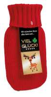 Wärmflasche mit kuscheligem Stricküberzug und Weihnachtsmotiv. Fassungsvolumen 500ml. Ihre Werbung drucken wir auf die Rückseite des Überzugs.