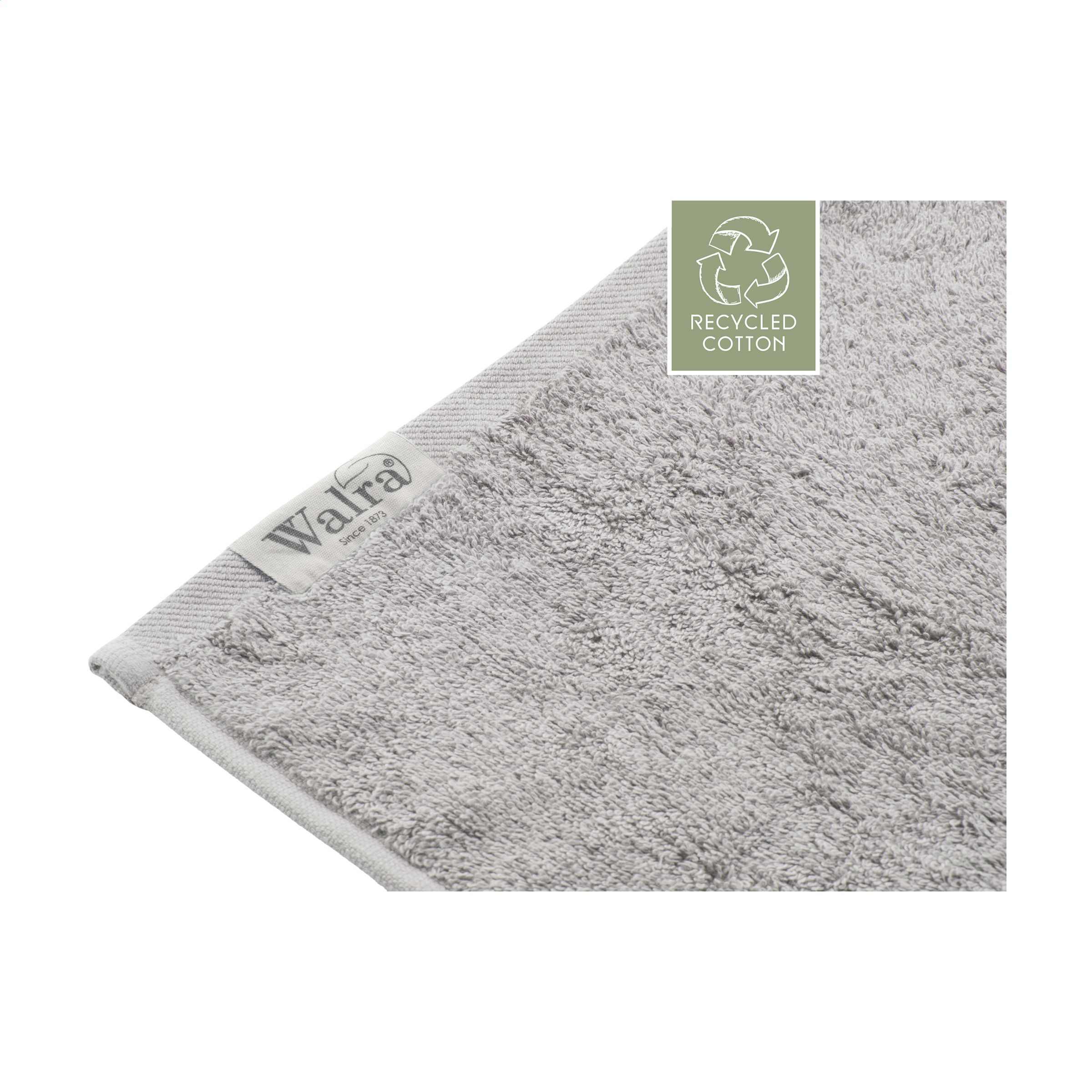 Stilvolles Handtuch der Marke Walra. Hergestellt aus 70% recycelter Baumwolle und 30% Baumwolle (550 g / m²). Das Handtuch hat eine feine Struktur, eine elegante Bordüre und eine praktische Aufhängeschlaufe. Wunderbar weich und gut saugfähig. Dieses Produkt ist Öko-Tex-zertifiziert. Durch die Wiederverwendung von Materialien werden bei der Herstellung dieser Badetextilien eine Menge Wasser, CO2-Emissionen und Energie eingespart. Dies wird durch das unabhängige REMO-Gütesiegel bestätigt.