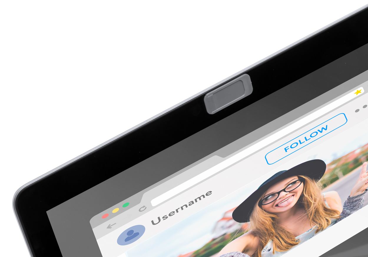 Webcamblocker mit Schiebedeckel und selbstklebender Rückseite.