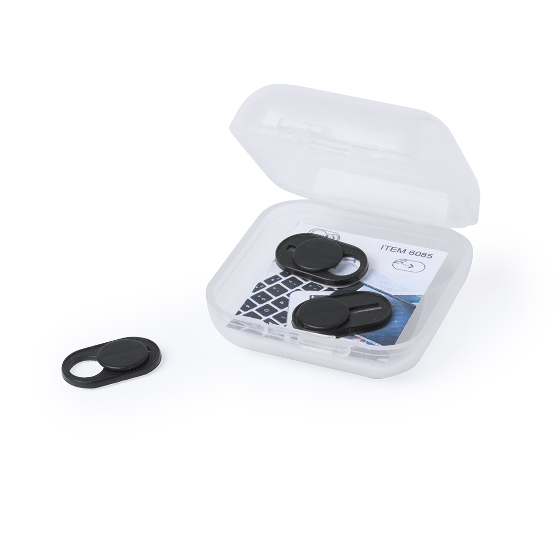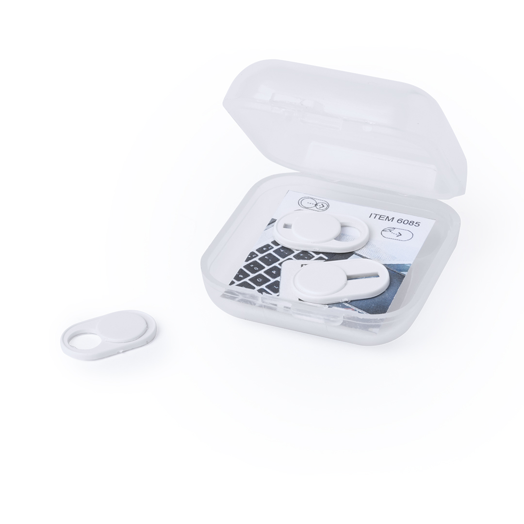 Cover für Webcam zum Schutz der Privatsphäre. In ultrakompakter Größe und verpackt in einer individuellen, halbtransparenten Dose mit 3 Stück. Erhältlich in den Farben Weiß und Schwarz. Präsentiert in einem individuellen Beutel mit Kartoneinlage.