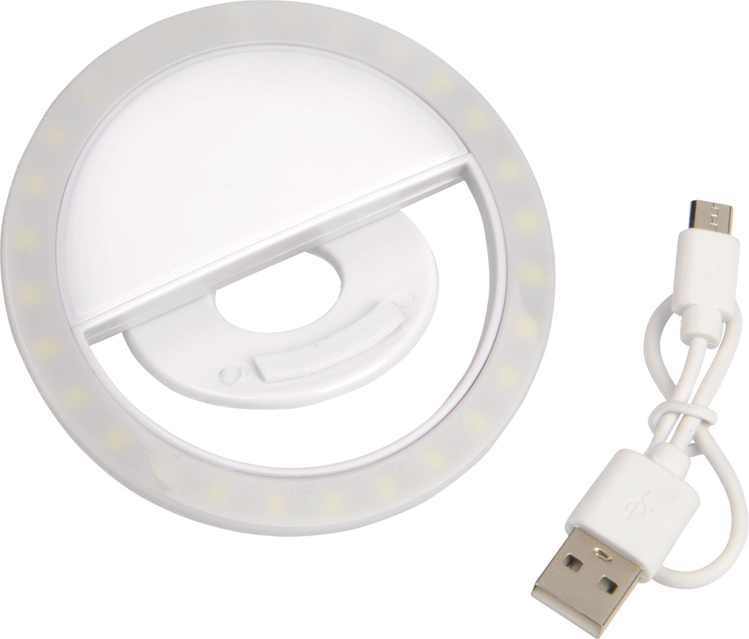 Webcam Ringlicht PERFECT ILLUMINATION: mit 28 LED, 3 Helligkeitsstufen, mit Clip zum Befestigen am Monitor oder Smartphone, inkl. USB-Ladekabel (Länge: ca. 20 cm), mit Ein- und Ausschalter, flexibel einsetzbar dank integriertem Lithium-Akku mit 80 mAh, besonders geeignet auch für Videokonferenzen und Fernarbeit, in Box