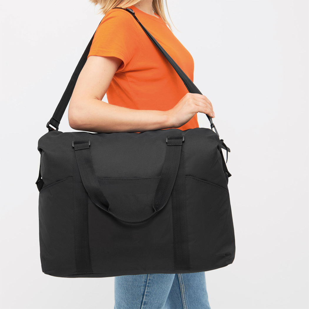 Weekender JOURNEY: geräumiges Reißverschluss-Hauptfach mit leicht verstärktem Boden, 3 Steckfächer auf der Vorderseite, Reporterfunktion und kleines Reißverschluss-Fach auf der Rückseite, 2 Tragegriffe, verstell- und abnehmbarem Schultergurt, Reißverschluss-Innenfach, 2 Innensteckfächer, Stauraum anpassbar durch 2 seitliche Gurtbänder mit Druckknopf