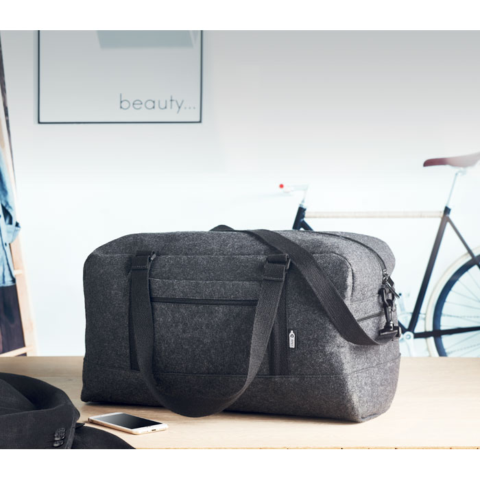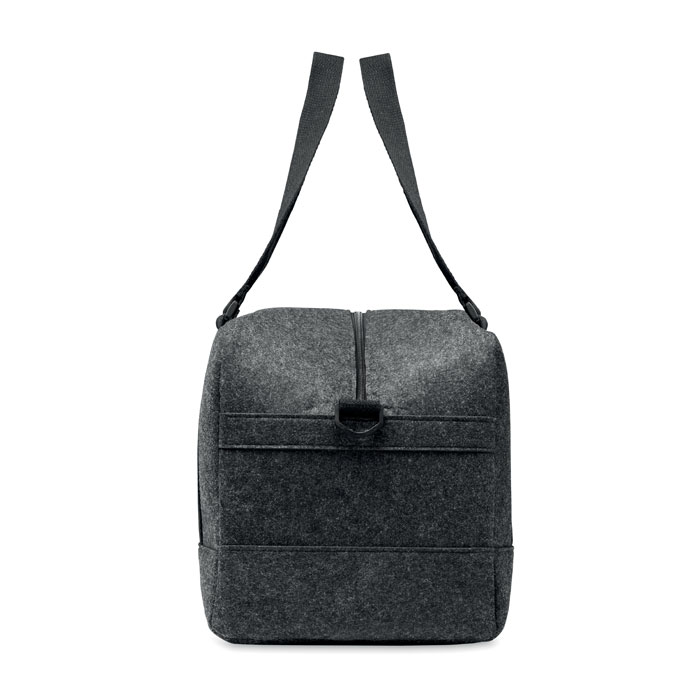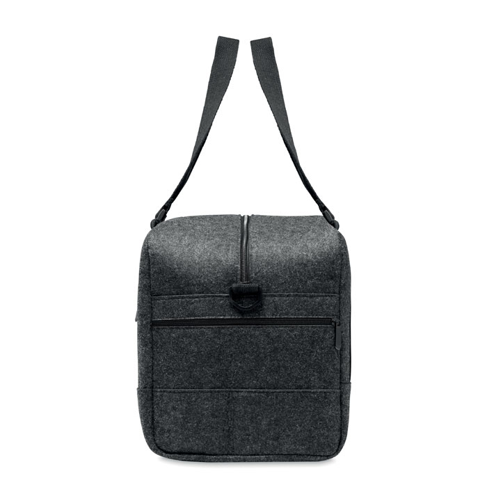 Weekender-Tasche aus RPET-Filz. Fronttasche mit Reißverschluss, Griffe aus Canvas und abnehmbarer, verstellbarer Schultergurt. Auch ideal als Sporttasche.