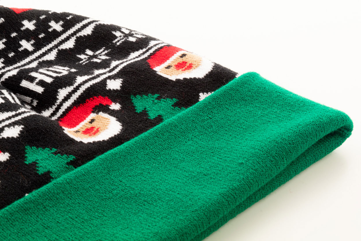 Gestrickte weihnachtliche Wintermütze aus Acryl mit Bommel.