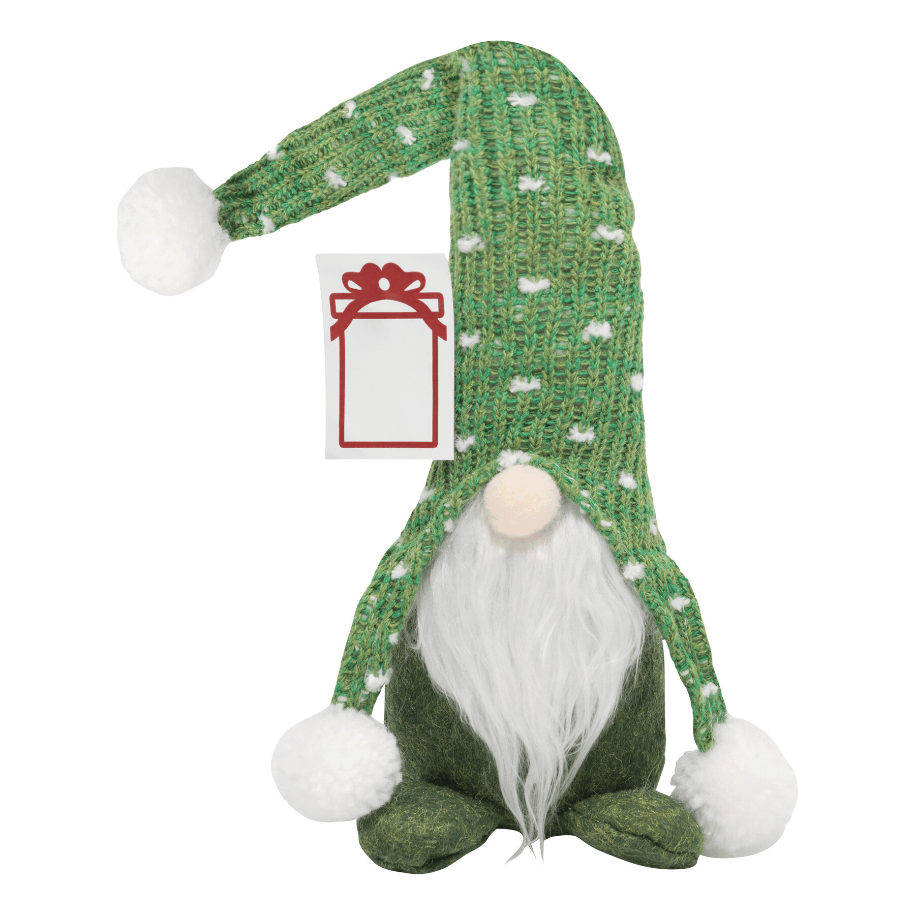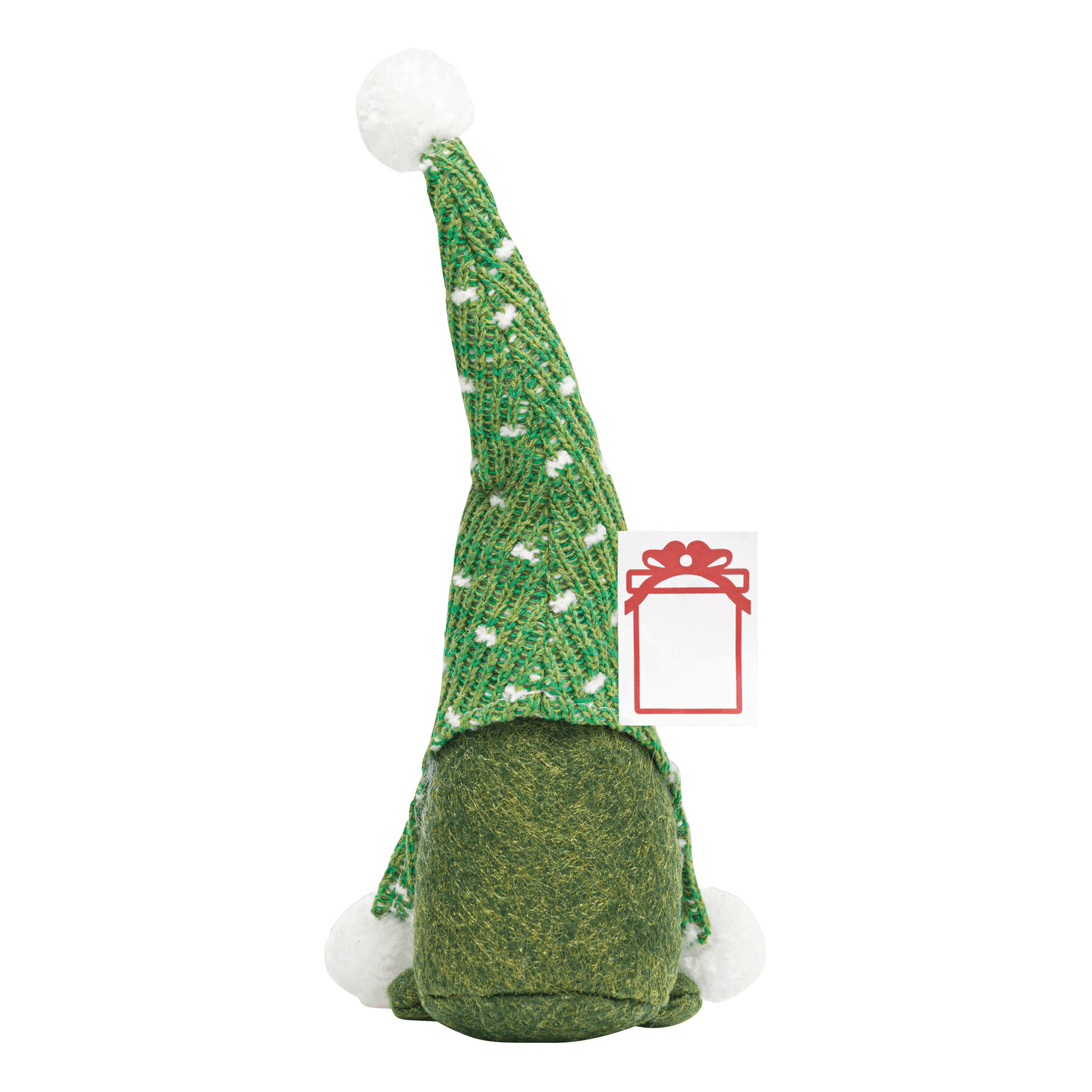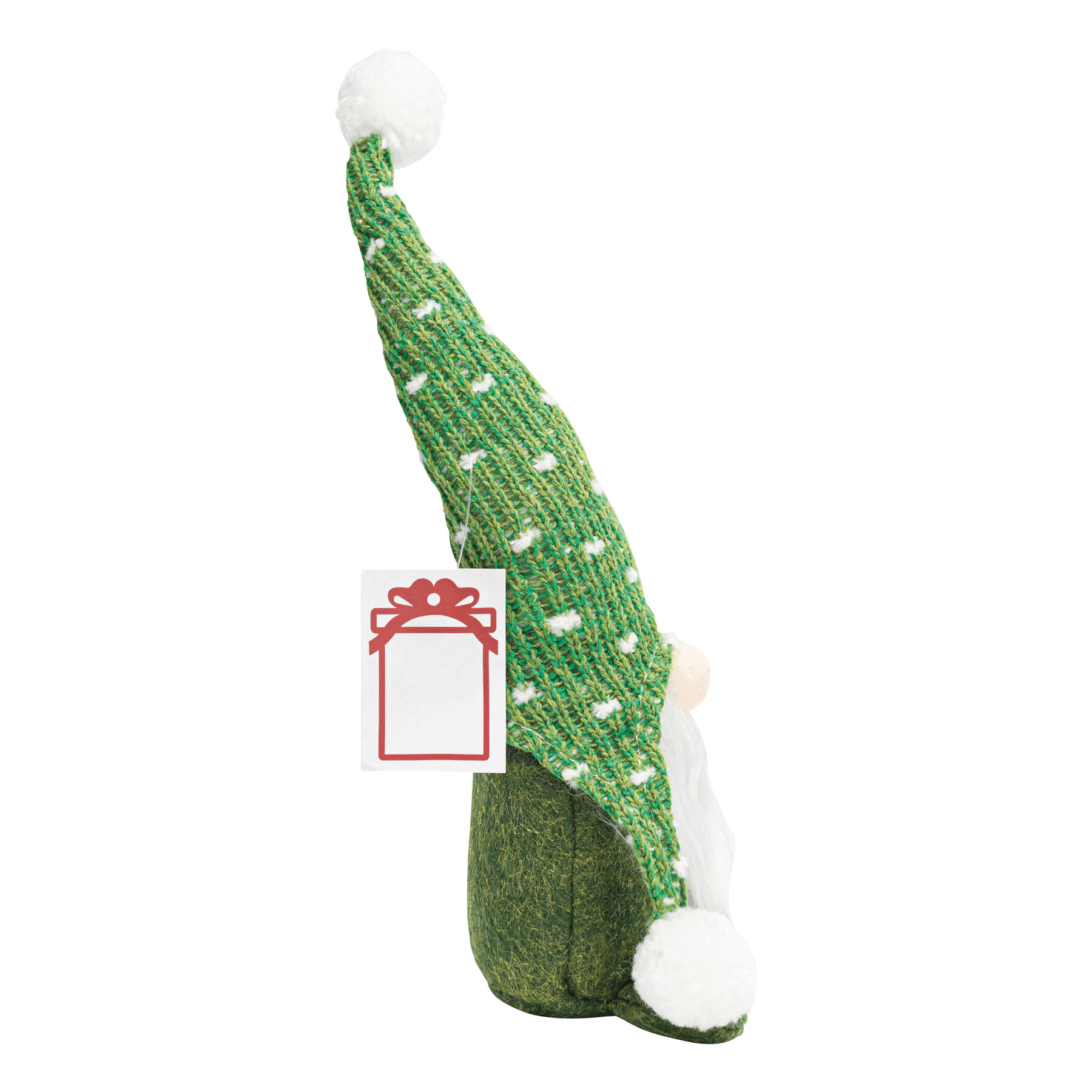 Weihnachts-Wichtel FRANZ: Woll-Zipfelmütze mit weißen Bommels, Mütze lässt sich durch integrierten Draht beliebig formen, Deko-Figur zur Beschwerung mit Kies gefüllt für einen sicheren Stand, mit Geschenkanhänger zum Bedrucken