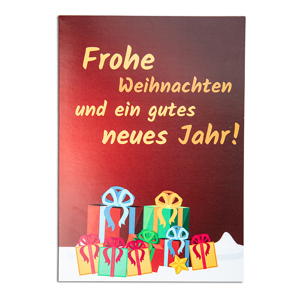 Im handlichen Endformat DIN A6 und zweifach gefaltet, präsentiert sich unsere Weihnachtsbaum Karte als einzigartige Kombination aus Grußkarte und Samen der Nordmanntanne. Öffnet man die Karte, entdeckt man eine weihnachtlich gestaltete Innenkontur: Ein stilvollgezeichneter Weihnachtsbaum, der die Vorfreude auf das Fest der Liebe weckt. In der Mitte des Baumes ist ein kleines Tütchen mit Samender Nordmanntanne eingesteckt. Setzt man diesen Samen in die Erde, kann man erleben, wie ein eigener Weihnachtsbaum heranwächst. Ein Symbol für das Leben, die Hoffnung und die Verbundenheit in der festlichen Jahreszeit. Die gesamte Karte kann individuell gestaltet und bedruckt werden, um eine persönliche Botschaft oder das Firmenlogo perfekt zur Geltung zu bringen. Verpackt im weißen C6Briefumschlag, nicht verschlossen.
