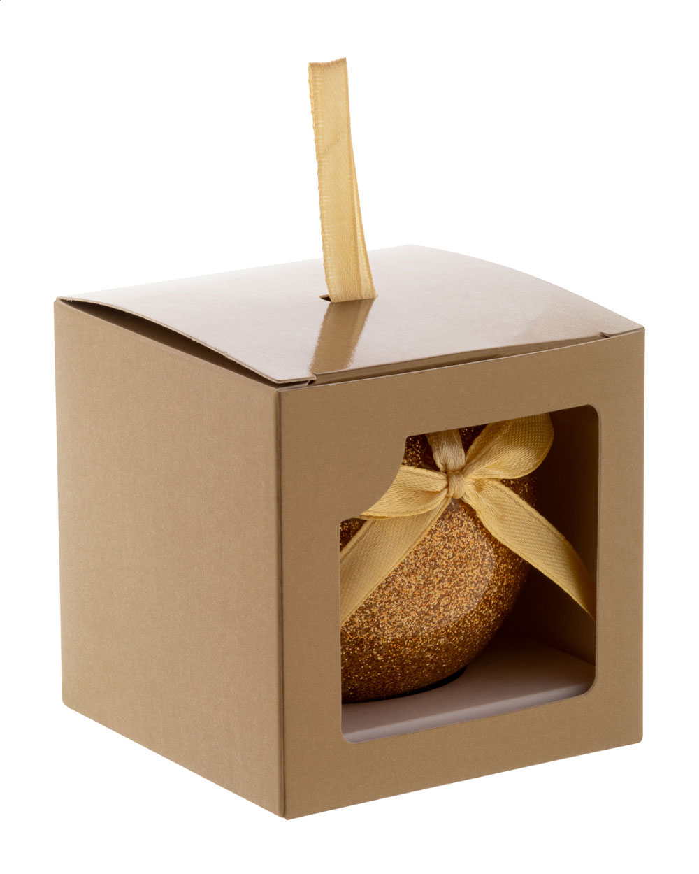 Glitzernde Weihnachtskugel aus PU-Schaum mit Bandaufhänger. Kugeldurchmesser: 75 mm. Einzeln in farblich abgestimmeter Geschenkverpackung aus Papier.