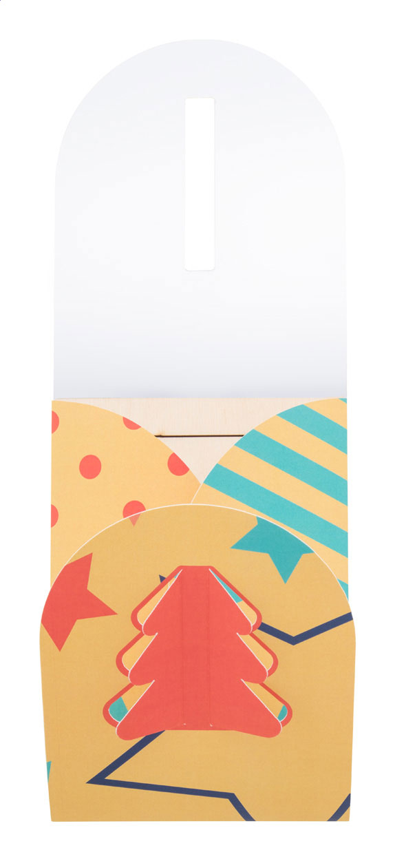 Ndividuelle, faltbare Weihnachtskarte aus Papier mit individueller Grafik und gestanzter Weihnachtsbaumform auf dem Einband, einschließlich Bastelpuzzle aus Holz in Form eines Weihnachtsbaums. Inklusive C6-Postumschlag. Mindestbestellmenge: 100 Stück.
