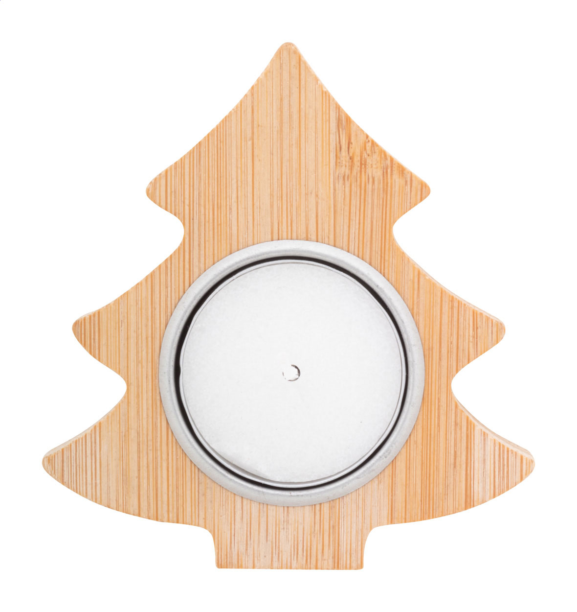 Weihnachtskerzenhalter aus Bambus mit Vanilleduft-Teelicht aus Pflanzenwachs. Brenndauer: 4 Stunden. Einzeln in Kraftpapierbox.