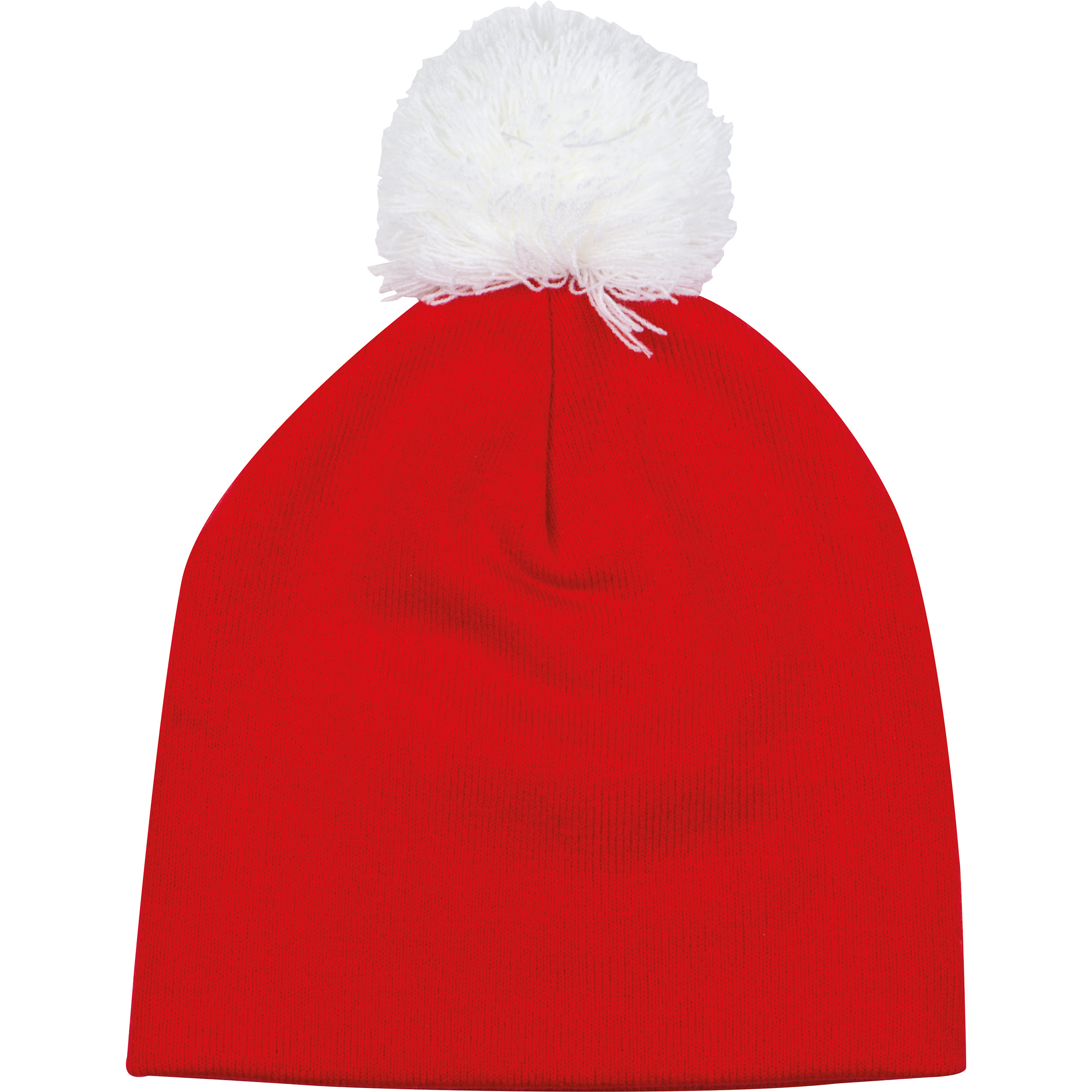 Weihnachtliche Strickmütze aus Acryl. Ihre Werbung drucken wir auf die Rückseite.