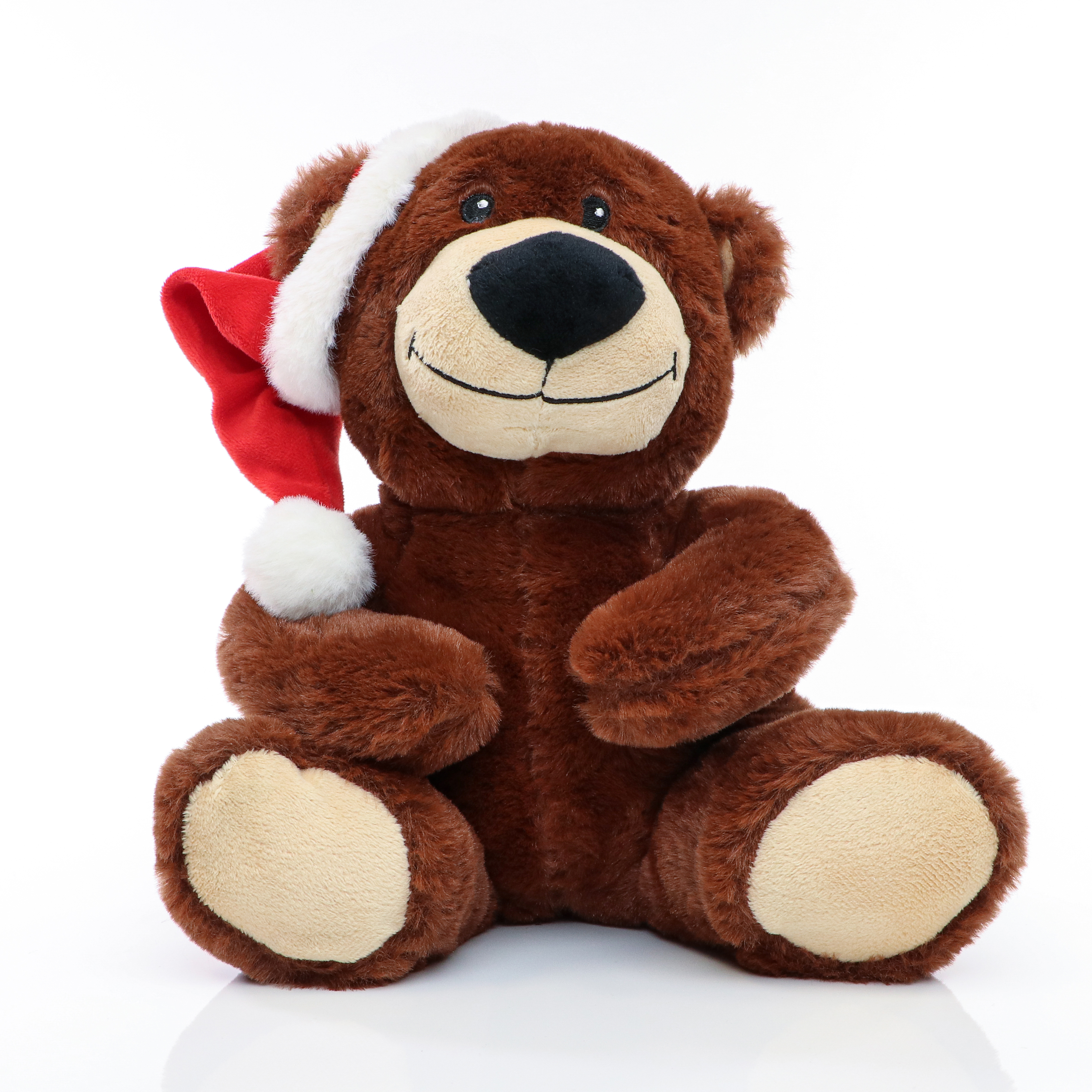 Mit dieser Kopfbedeckung werden auch unsere kleinsten Plüschtiere in Weihnachtsstimmung gebracht. Die typisch Weihnachtsmütze mit weißer Krempe und weißem Bommel – der Klassiker – hat auf einer Seite einen Schlitz für ein Plüschtierohr, die Mütze sitzt dann seitlich auf dem Kopf und wird durch das Ohr gehalten – durch die Position wirkt diese Mütze noch niedlicher.