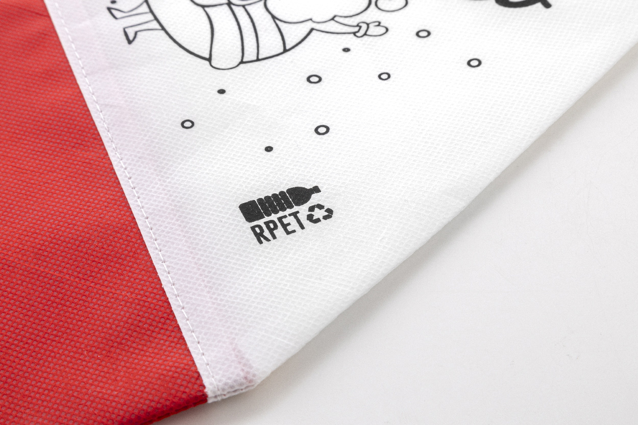 Weihnachtsmütze zum Ausmalen aus RPET-Vlies mit 5 Buntstiften.