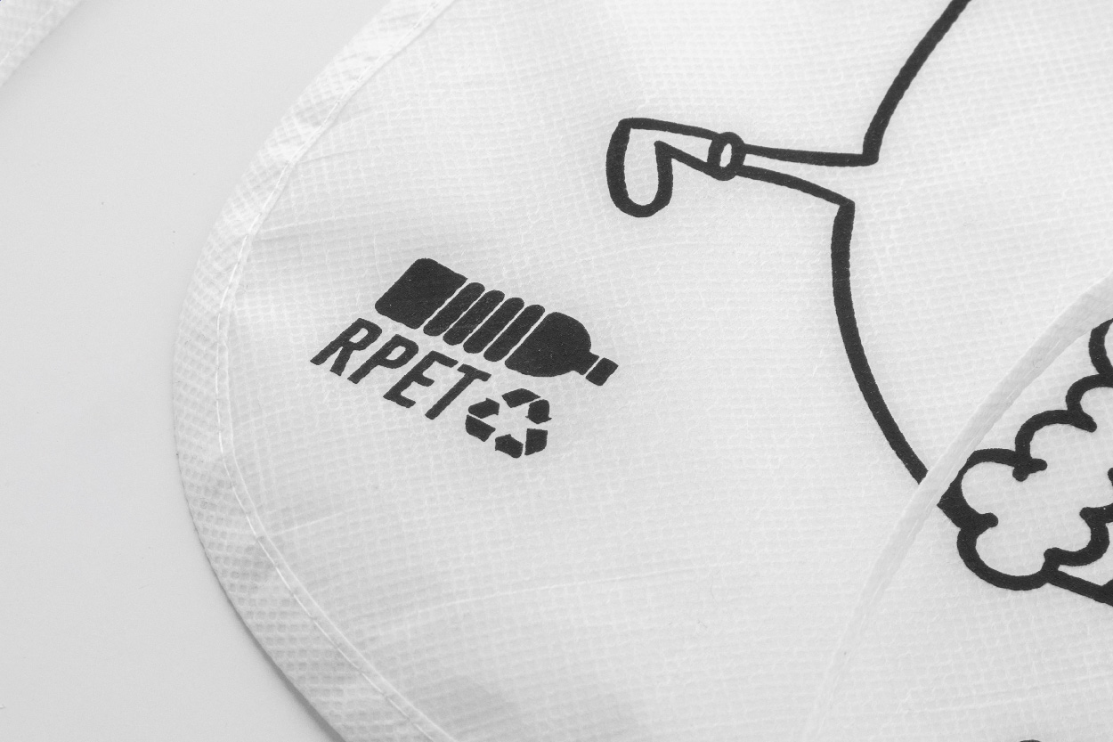Weihnachtsschürze für Kinder zum Bemalen aus RPET-Vlies mit 5 Buntstiften.