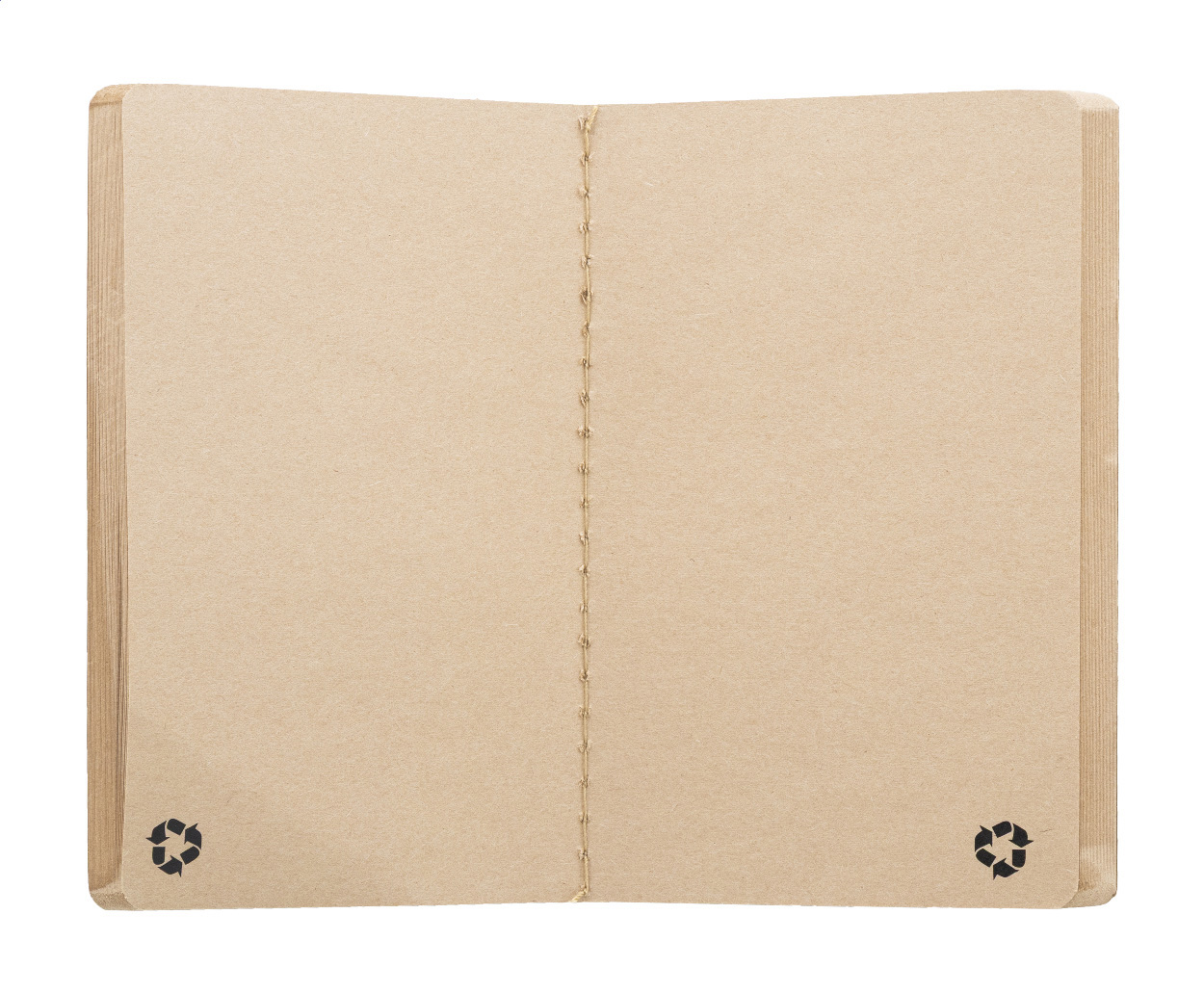 Notizbuch mit Einband aus recyceltem Kraftpapier, gestanztem Weihnachtsbaum und 60 Seiten (blanko) aus recyceltem Kraftpapier. Format A6.