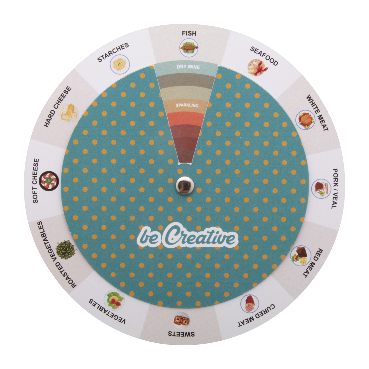 Individuelle Weinempfehlungsscheibe aus Pappe. Diese Scheibe hilft bei der Weinauswahl für verschiedene Speisen. Der Preis ist inkl. Vollfarbdruck auf der Scheibe. Mindestmenge: 100 Stk.