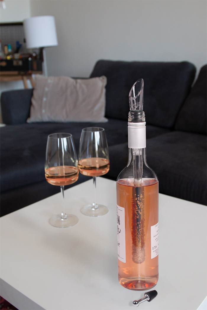 Weinkühlstab CHARDY mit abnehmbarem Ausgießer und Stopper: den mit Kühlgel gefüllten Edelstahl-Stab ca. 1 Stunde im Gefrierfach kühlen, danach den Ausgießer mit Stopper aufschrauben, einfach zu reinigen, schnell einsatzbereit, in Box