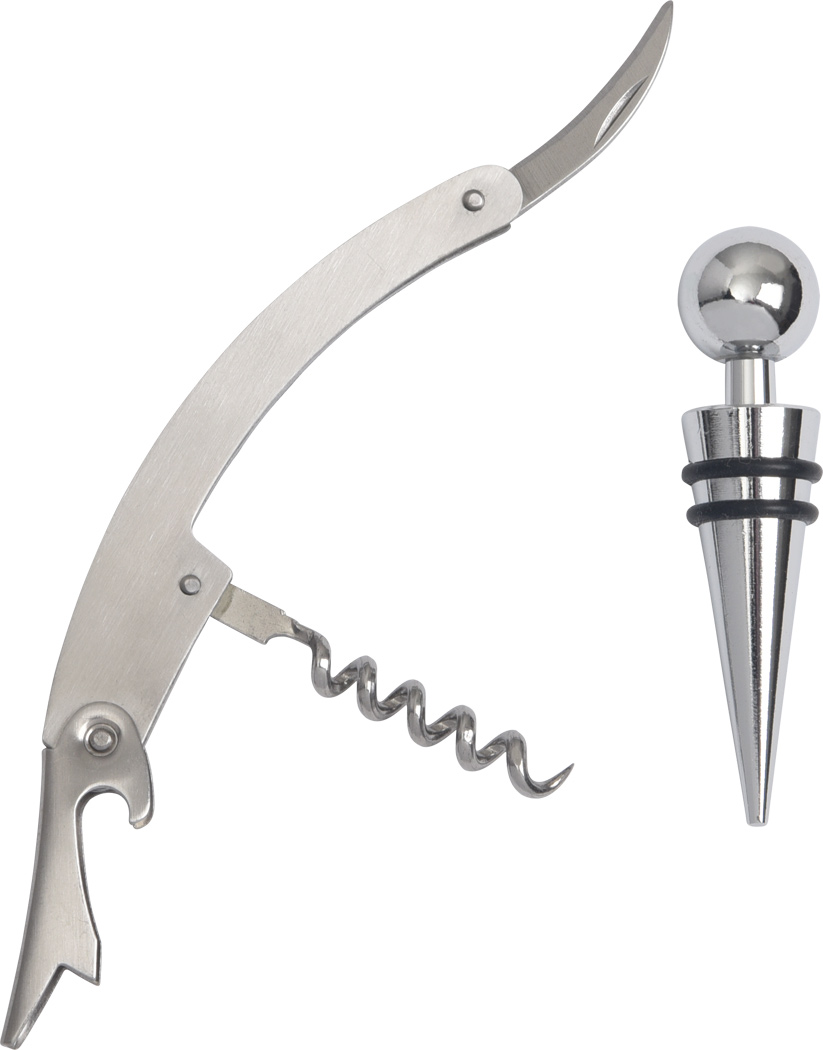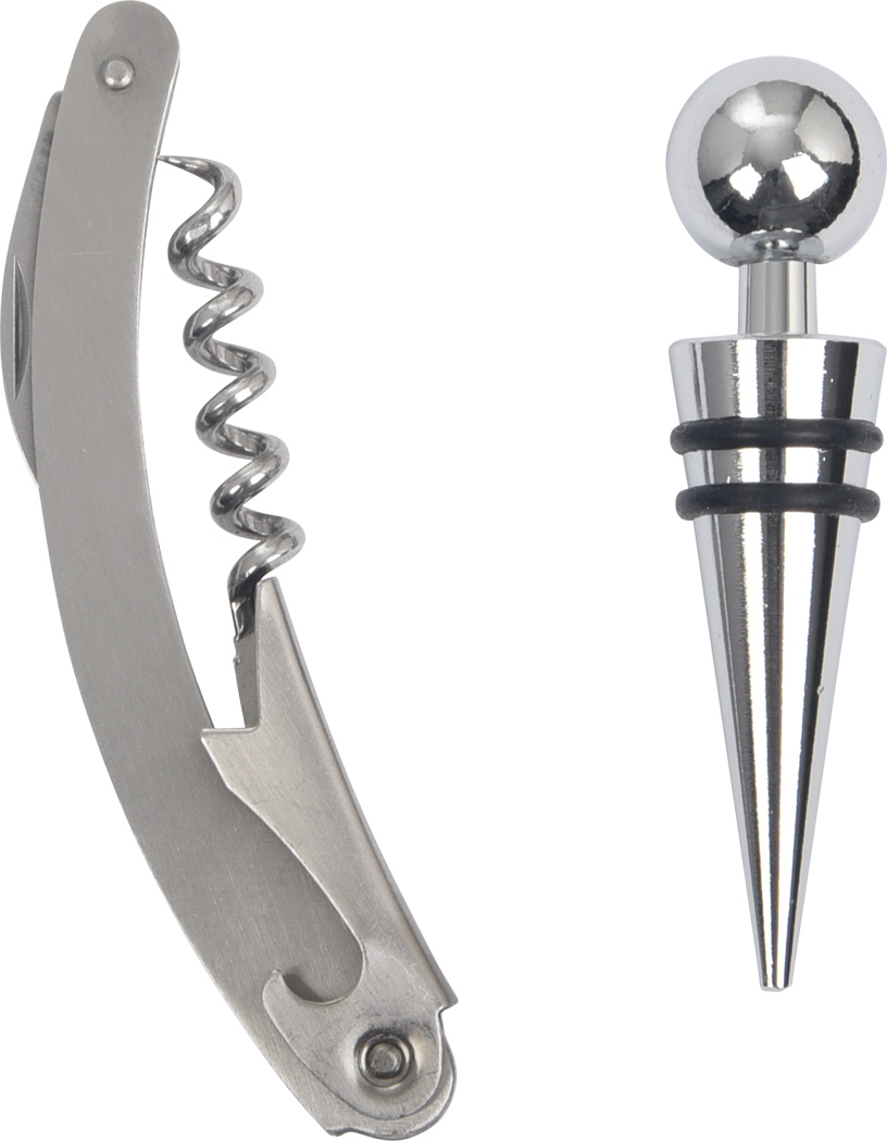 Weinset DUET, 2-teilig: bestehend aus Edelstahl-Kellnermesser und Metall-Flaschenverschluss, in Box