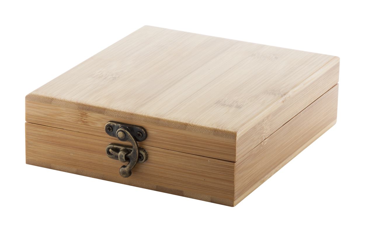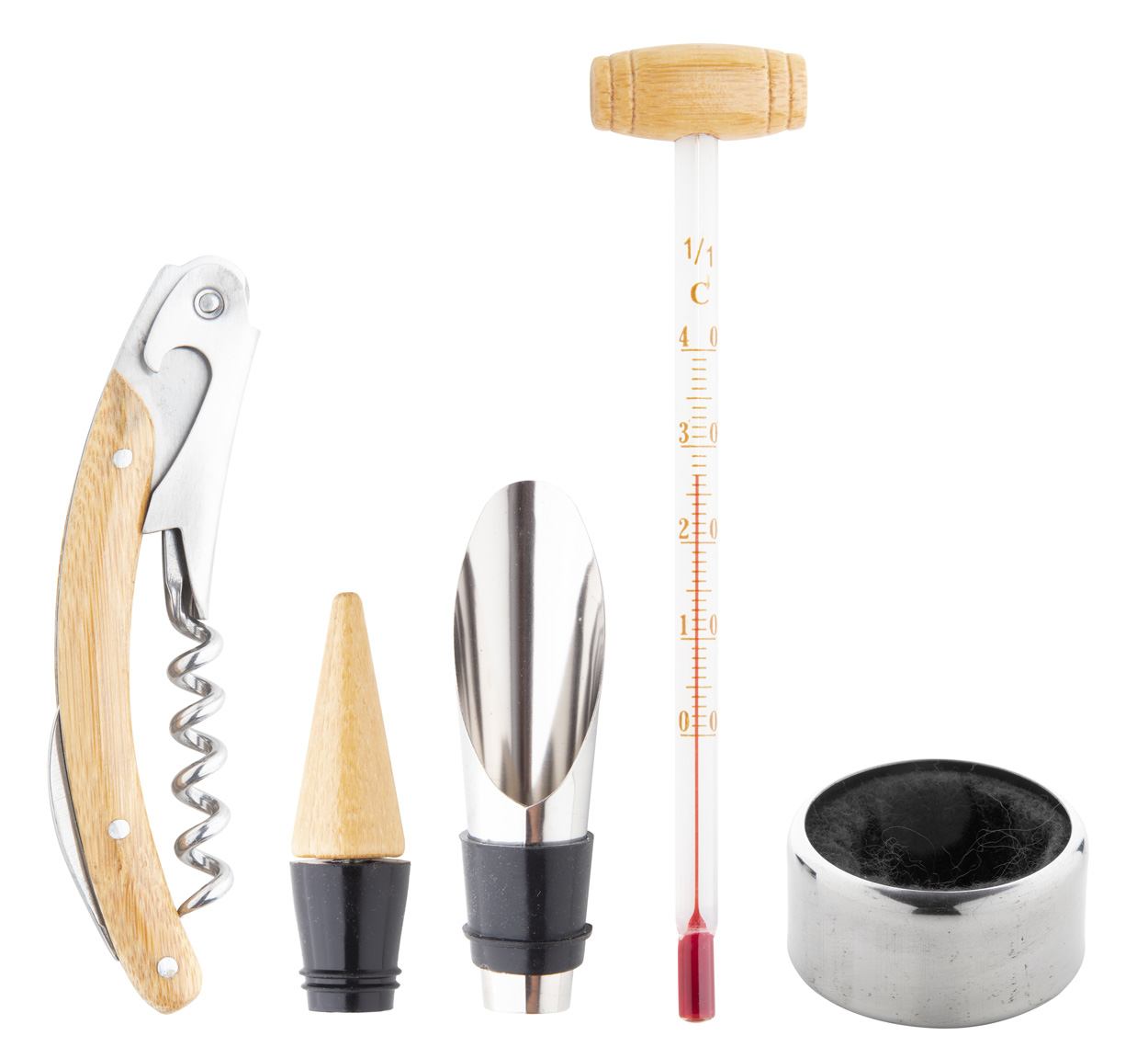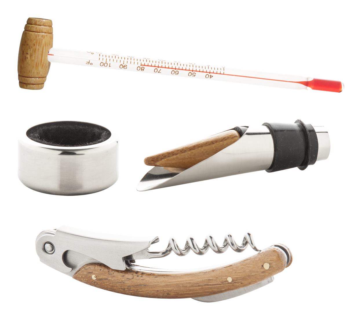 Weinset mit 4 Accessoires in einer Bambus-Geschenkbox.