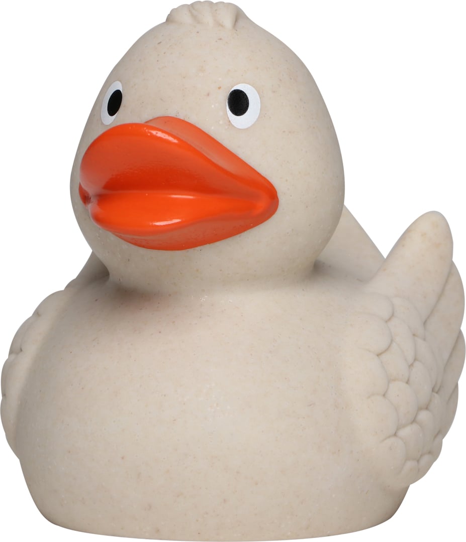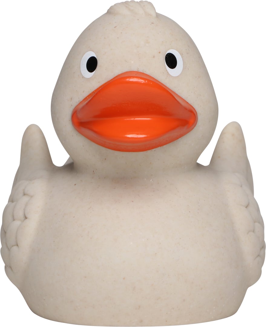 Die Weizen-Ente überzeugt durch ihre besondere Materialkombination: Sie besteht zu aus natürlichem Weizenstroh und zu aus strapazierfähigem PVC. Der beigemischte Weizen verleiht der Oberfläche eine feine, natürliche Textur und sorgt für eine angenehm matte Haptik. Genutzt wird dabei der Teil der Weizenpflanze, der nicht als Lebensmittel dient. Durch diese innovative Mischung entsteht ein aufmerksamkeitsstarker Werbeartikel mit authentischem Look und besonderem Charakter. Ein sympathisches Geschenk mit Werbewirkung – ob als Klassiker im Bad oder als nachhaltiger Hingucker auf Messen und Events. Die Ente eignet sich hervorragend für die Werbeanbringung auf dem Bürzel oder der Brust.