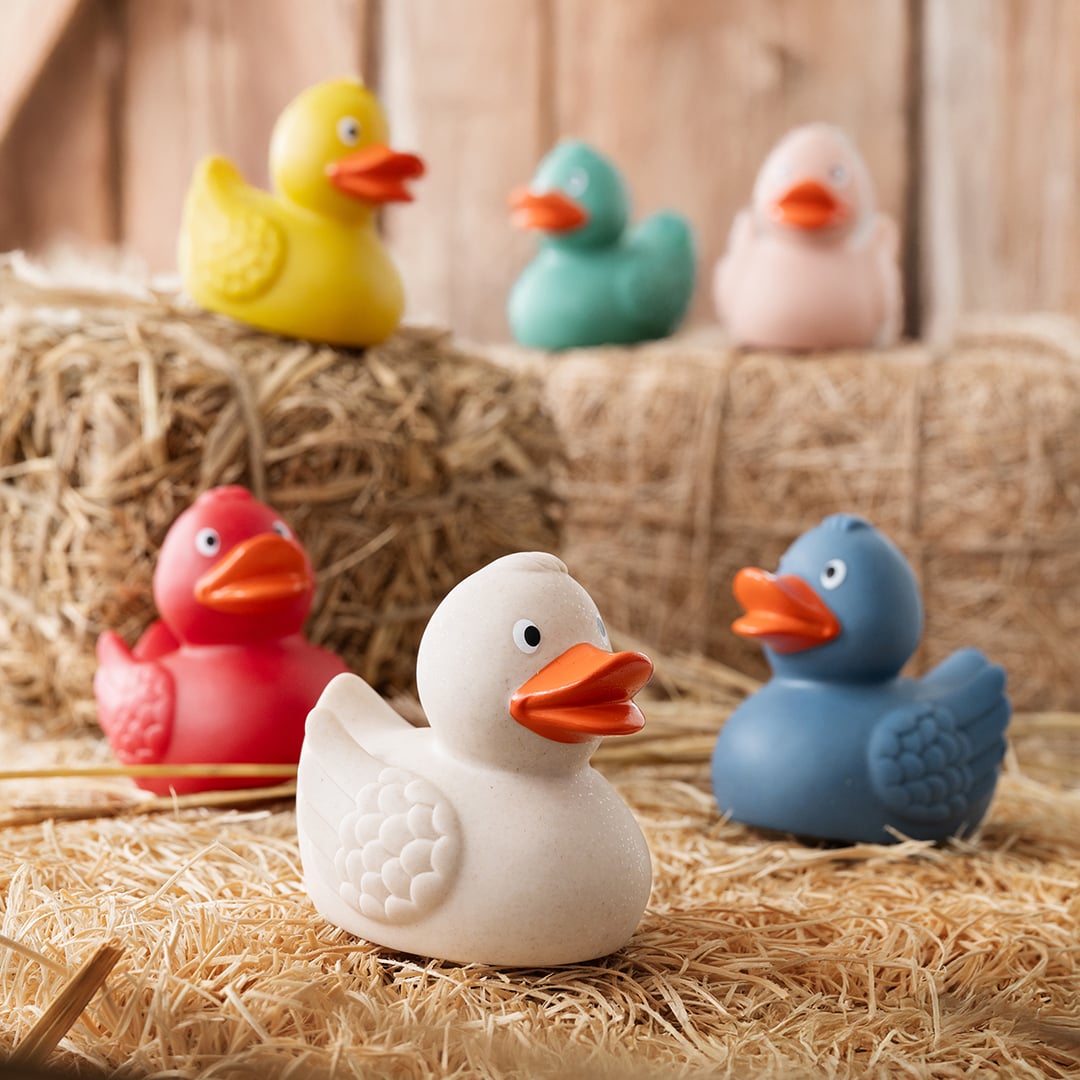 Die Weizen-Ente überzeugt durch ihre besondere Materialkombination: Sie besteht zu aus natürlichem Weizenstroh und zu aus strapazierfähigem PVC. Der beigemischte Weizen verleiht der Oberfläche eine feine, natürliche Textur und sorgt für eine angenehm matte Haptik. Genutzt wird dabei der Teil der Weizenpflanze, der nicht als Lebensmittel dient. Durch diese innovative Mischung entsteht ein aufmerksamkeitsstarker Werbeartikel mit authentischem Look und besonderem Charakter. Ein sympathisches Geschenk mit Werbewirkung – ob als Klassiker im Bad oder als nachhaltiger Hingucker auf Messen und Events. Die Ente eignet sich hervorragend für die Werbeanbringung auf dem Bürzel oder der Brust.