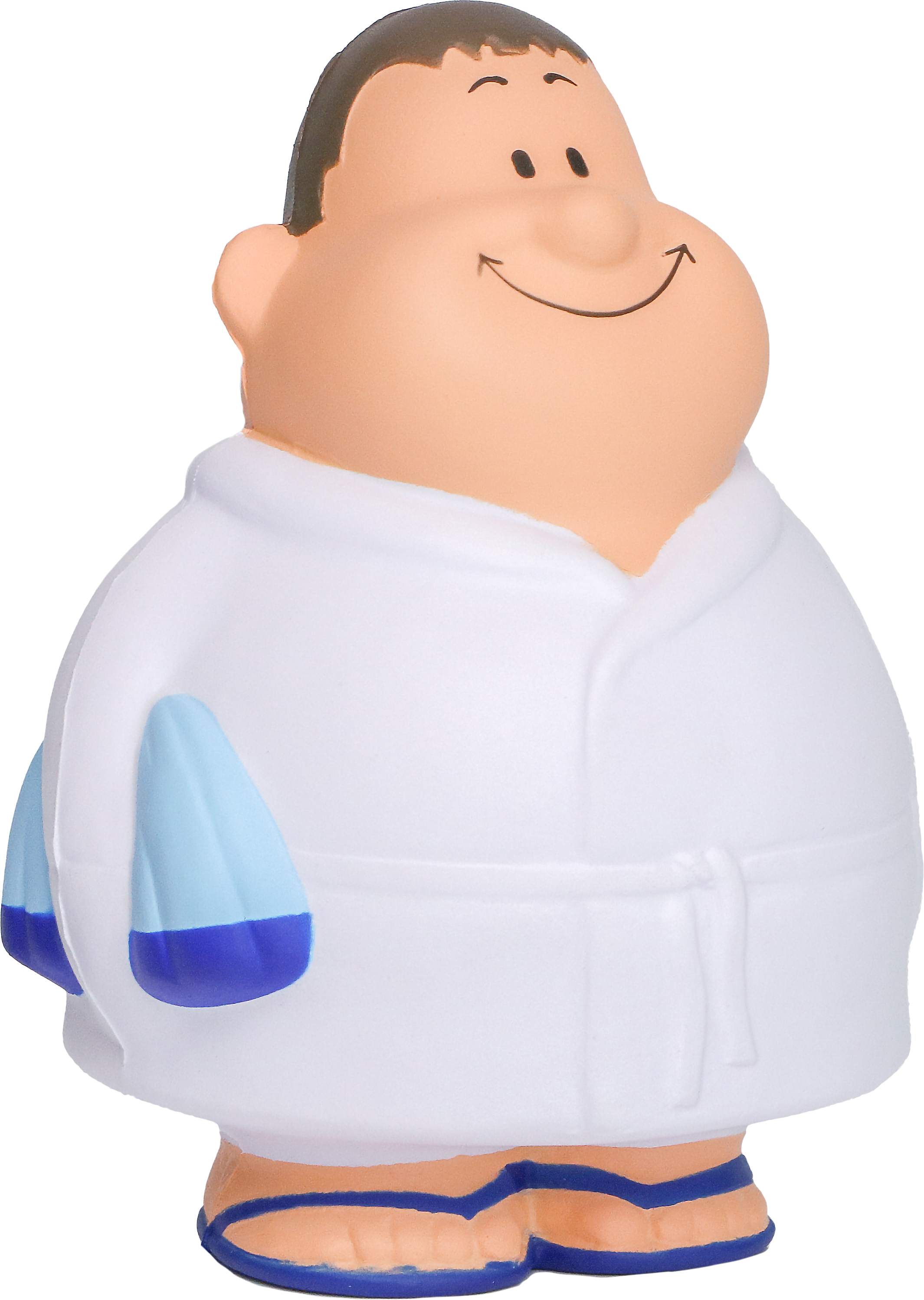 SQUEEZIES® Wellness Bert® ist die Personifikation von Entspannung: Nach einem Saunagang und einer Massage sieht die Welt gleich ganz anders aus - und das ist erst der Anfang aller Erholung. Im weißen Bademantel und dem blauen Handtuch unter seinem Arm, ist Bert® bereit für noch mehr Wellness Behandlungen. Damit auch Sie so richtig schön entspannt sind, einfach "zusammenknautschen". Durch die Materialbeschaffenheit nimmt das Produkt die Ursprungsform wieder ein.