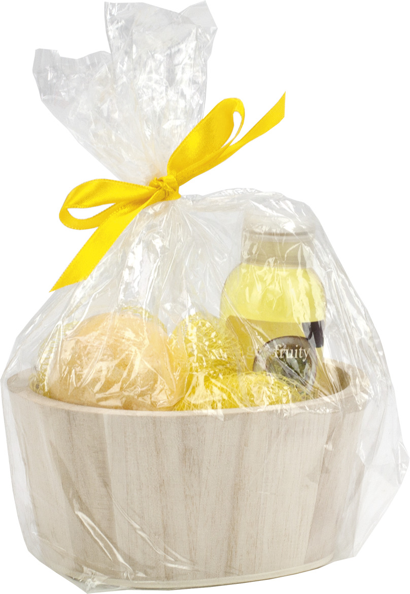 Behalten Sie die Balance! Das Wellness-Set "Yellow in Balance” besteht aus einem Holzkörbchen mit 50 ml Duschgel, 1 Badekugel und einem Schwamm. Duftrichtung der Badezusätze ist Passionsfrucht. Die ideale kleine Aufmerksamkeit für Mann und Frau!