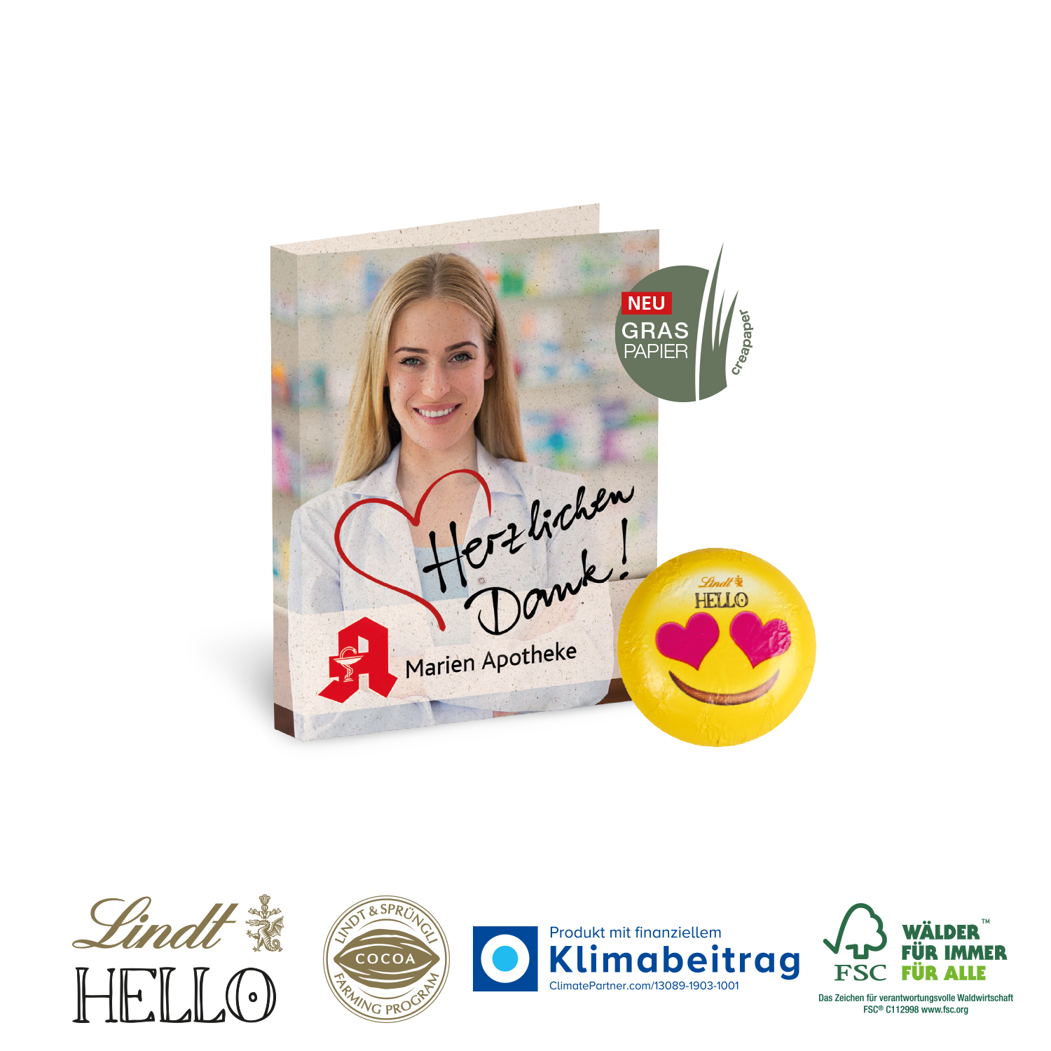 Süße Grüße mit optimaler Werbefläche! Süße Grußkarte mit viel Platz für Ihre individuelle Werbebotschaft. Wählen Sie Ihre Wunschfüllung aus einer Vielzahl beliebter Premium-Varianten. Der Werbeerfolg ist Ihnen damit sicher
