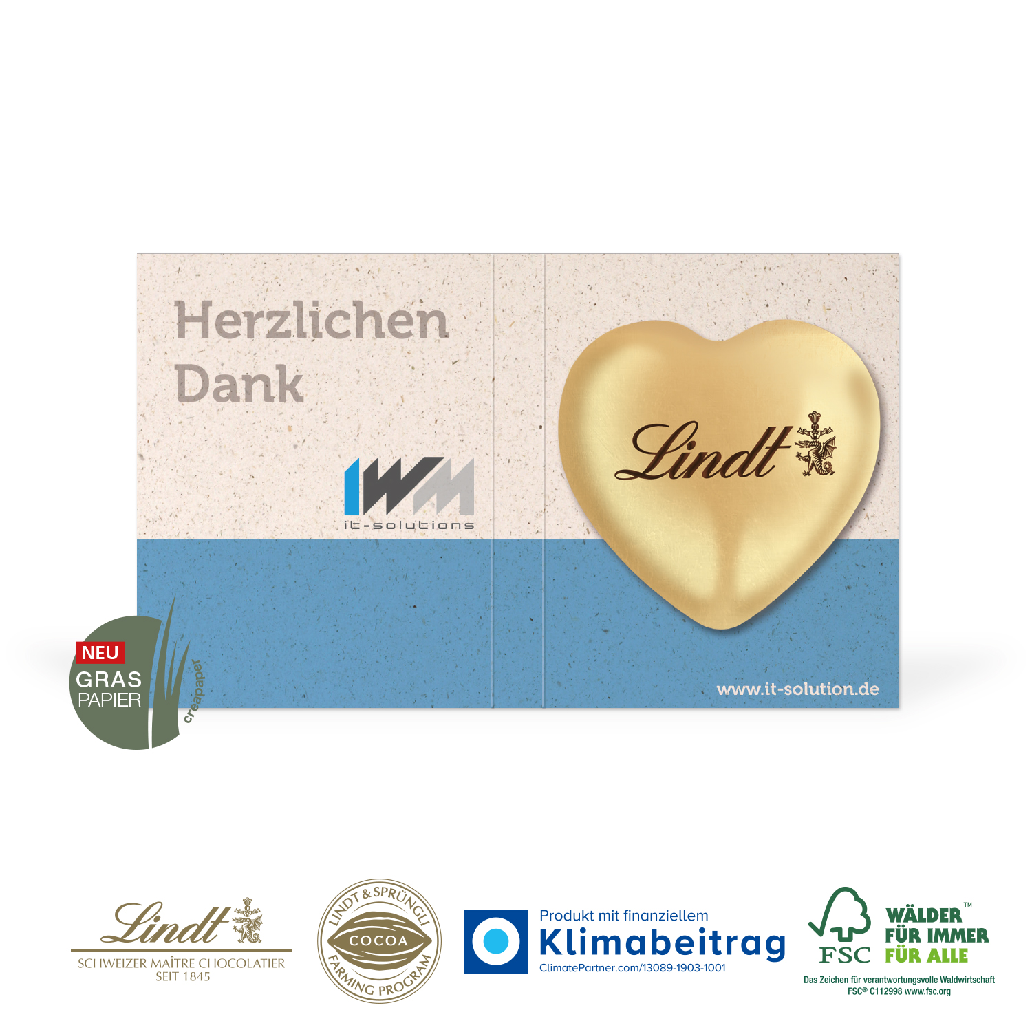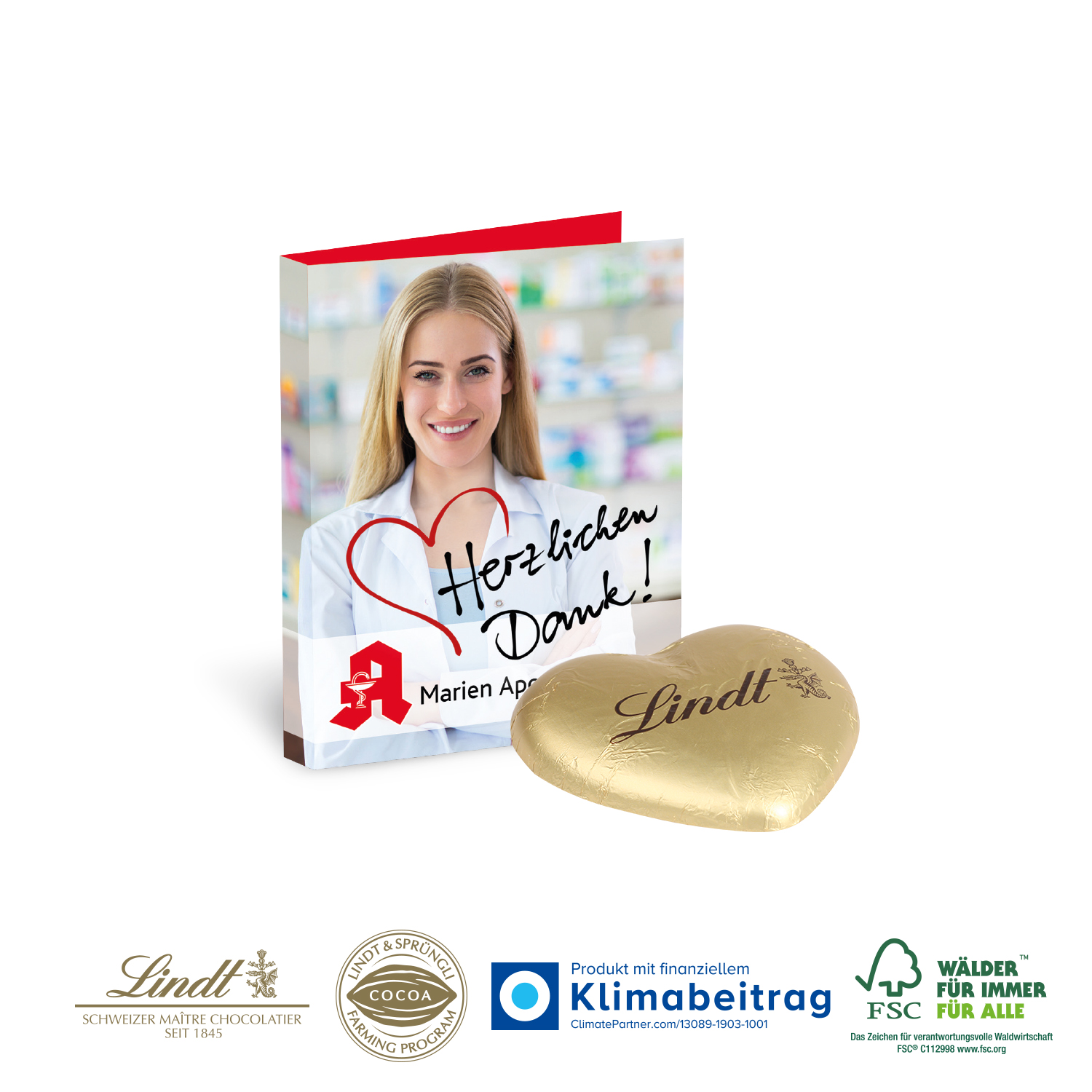 Werbekarte mit Lindt Schokoladen Herz 20 g