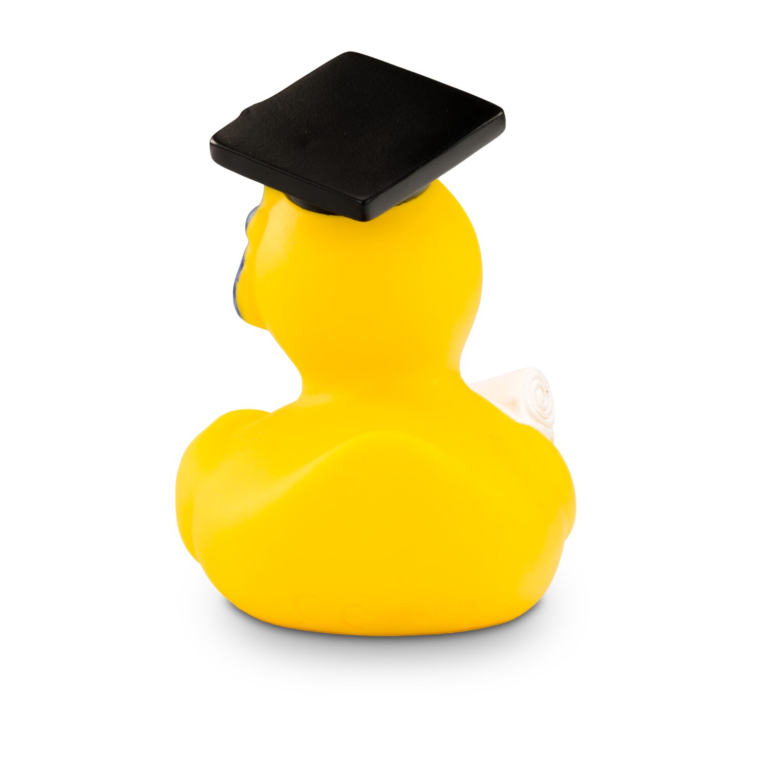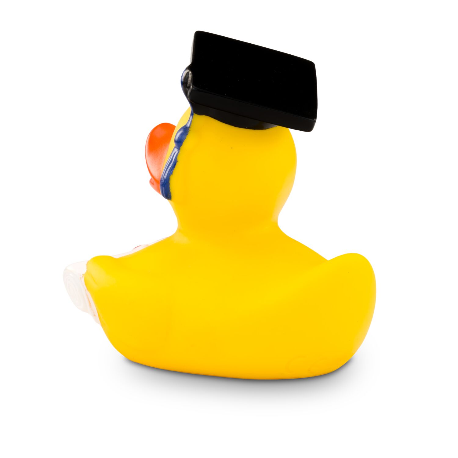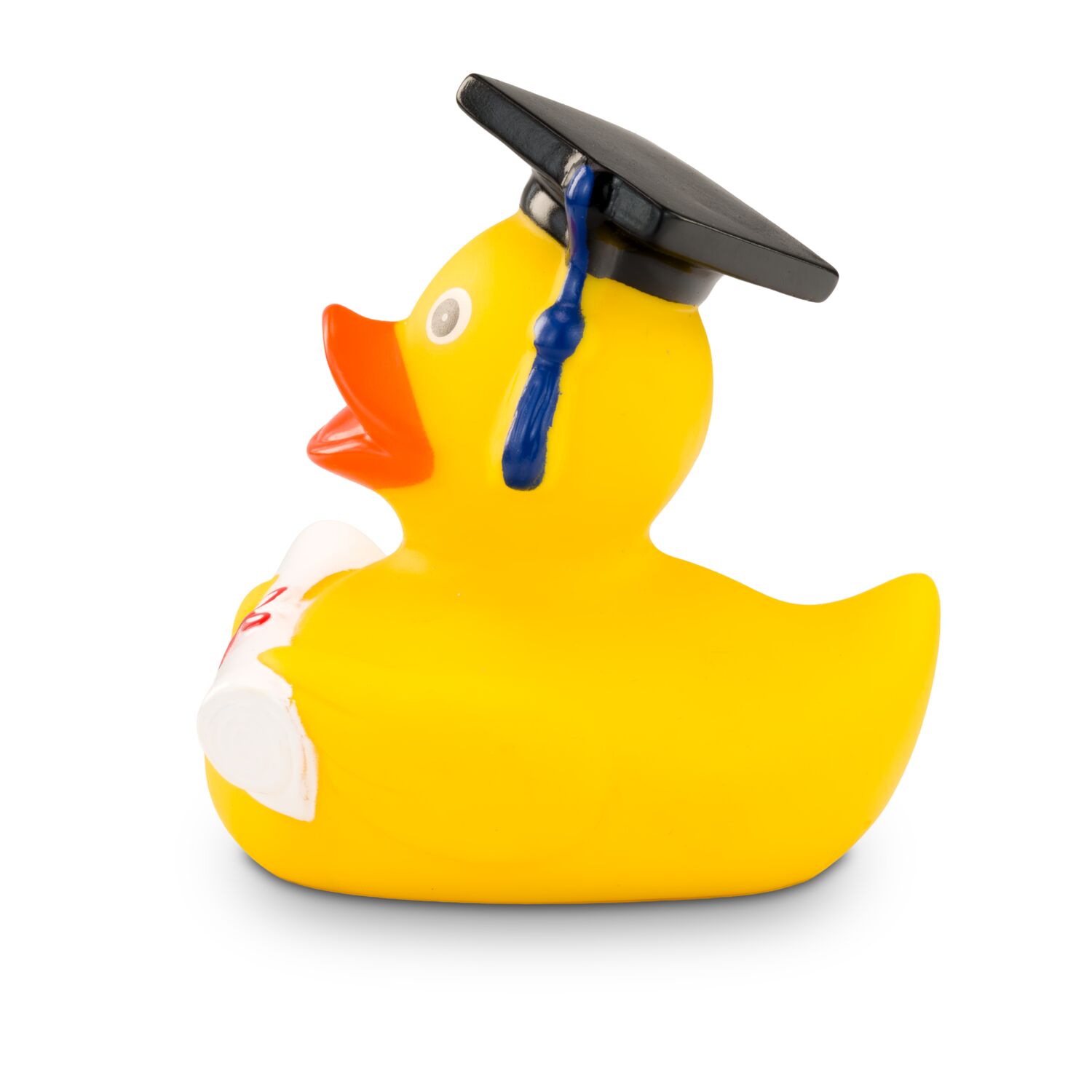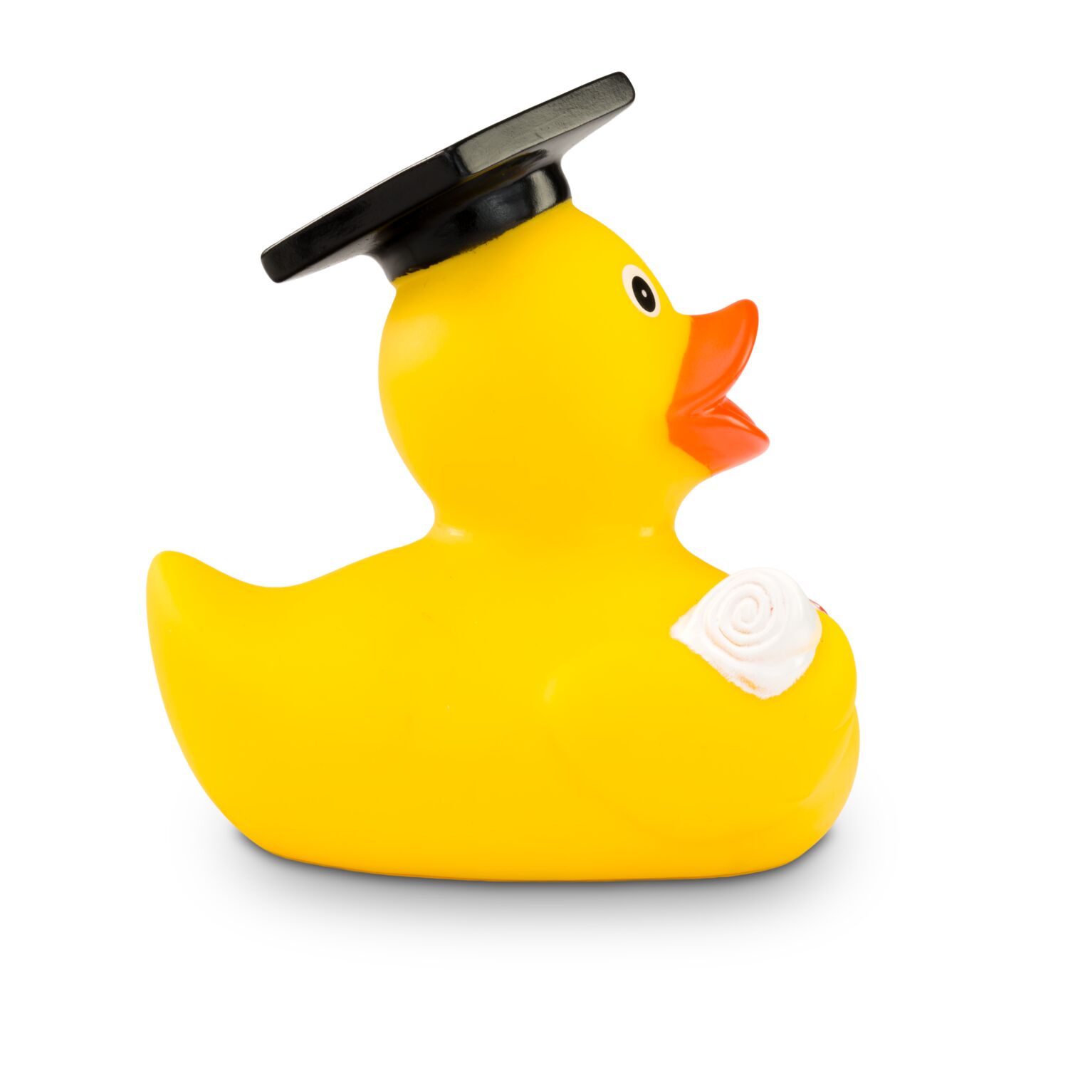 Albert Akademiker ist der schlauste Schnabel im Ententeich. Stolz trägt er seinen Absolventenhut und sein Diplom in der Hand. Er hat die Enten-Uni abgeschlossen und während seinem Bachelor und Master sehr viel gelernt, was er für seinen Doktortitel nutzen konnte. Größe: ca. 8 cm. Inklusive Quietschventil