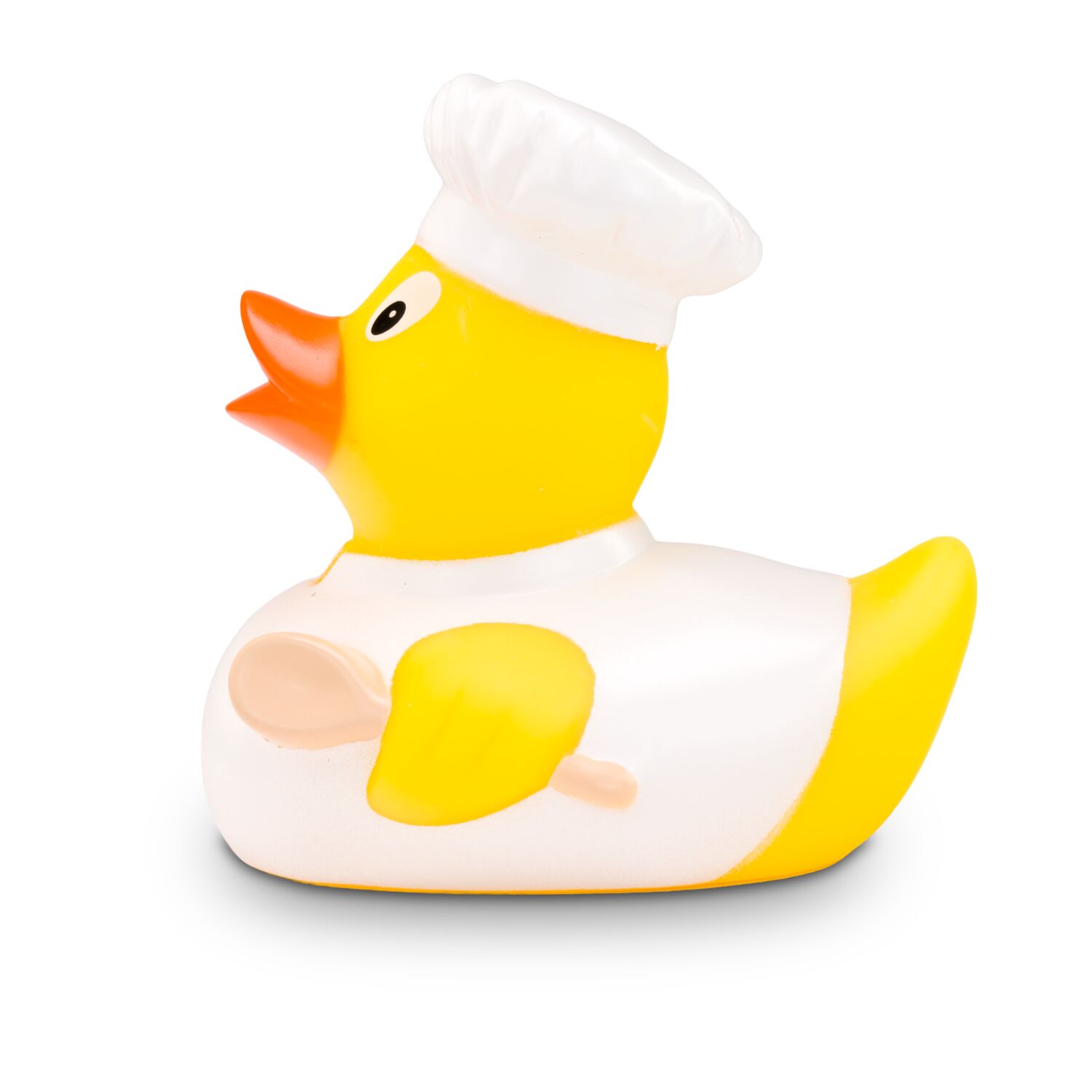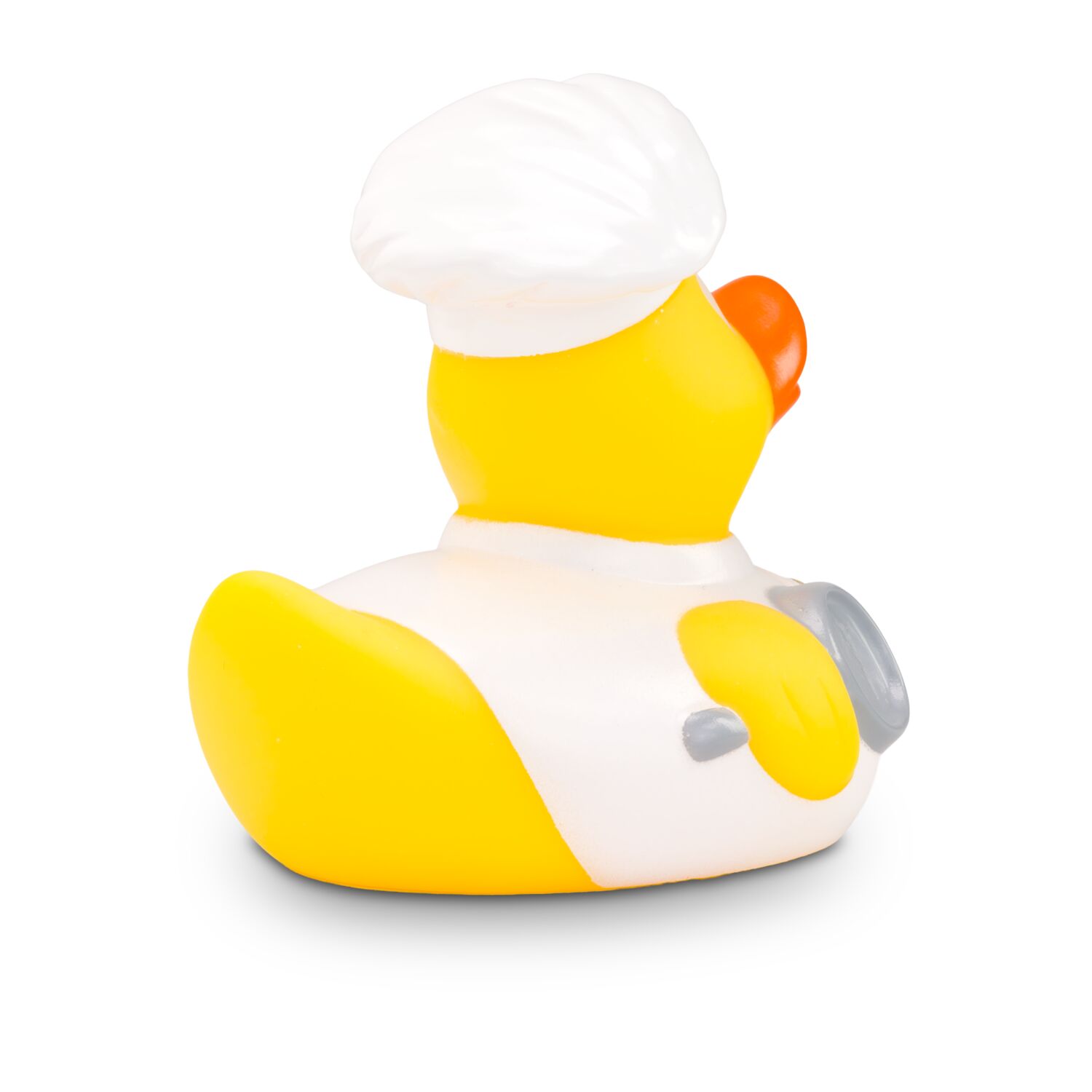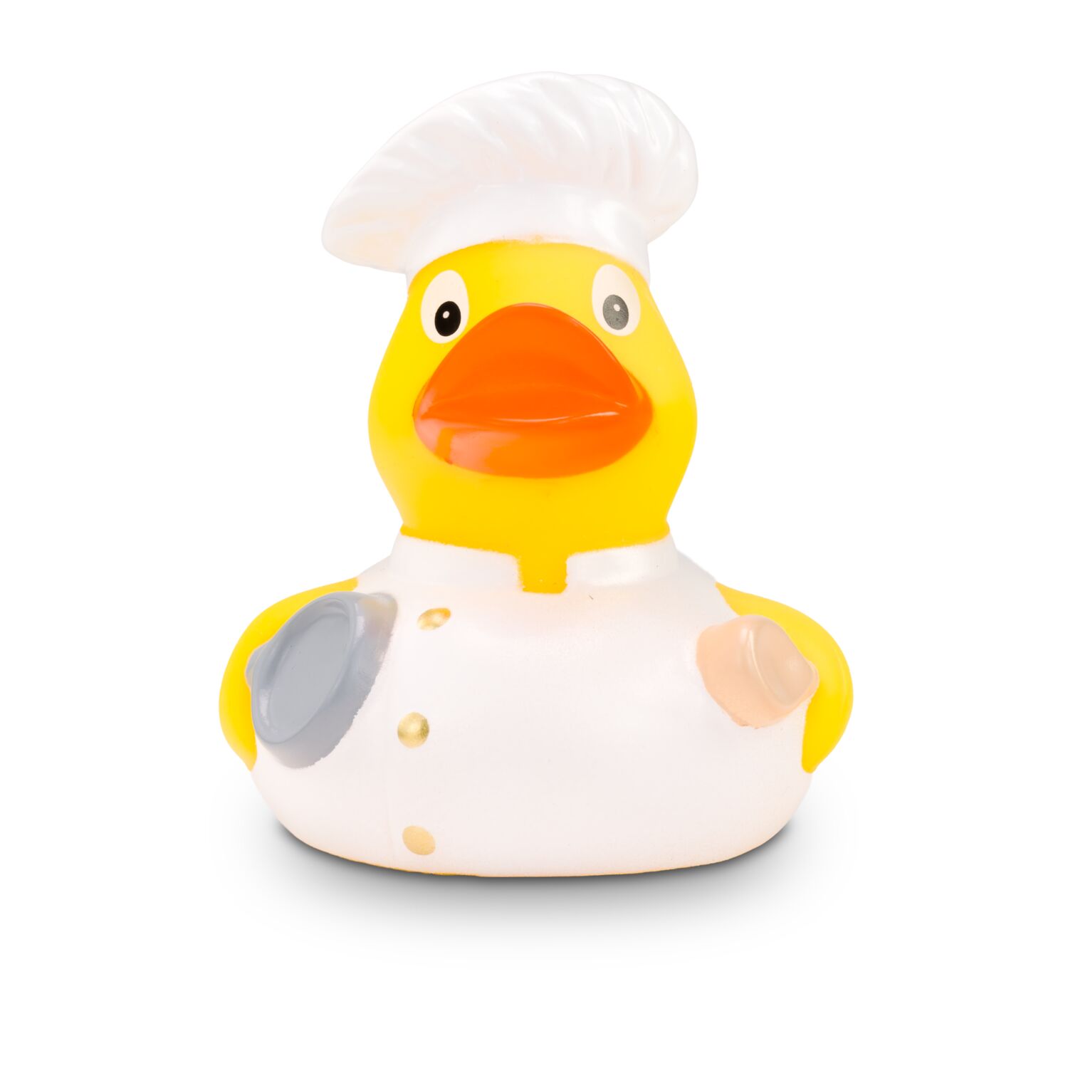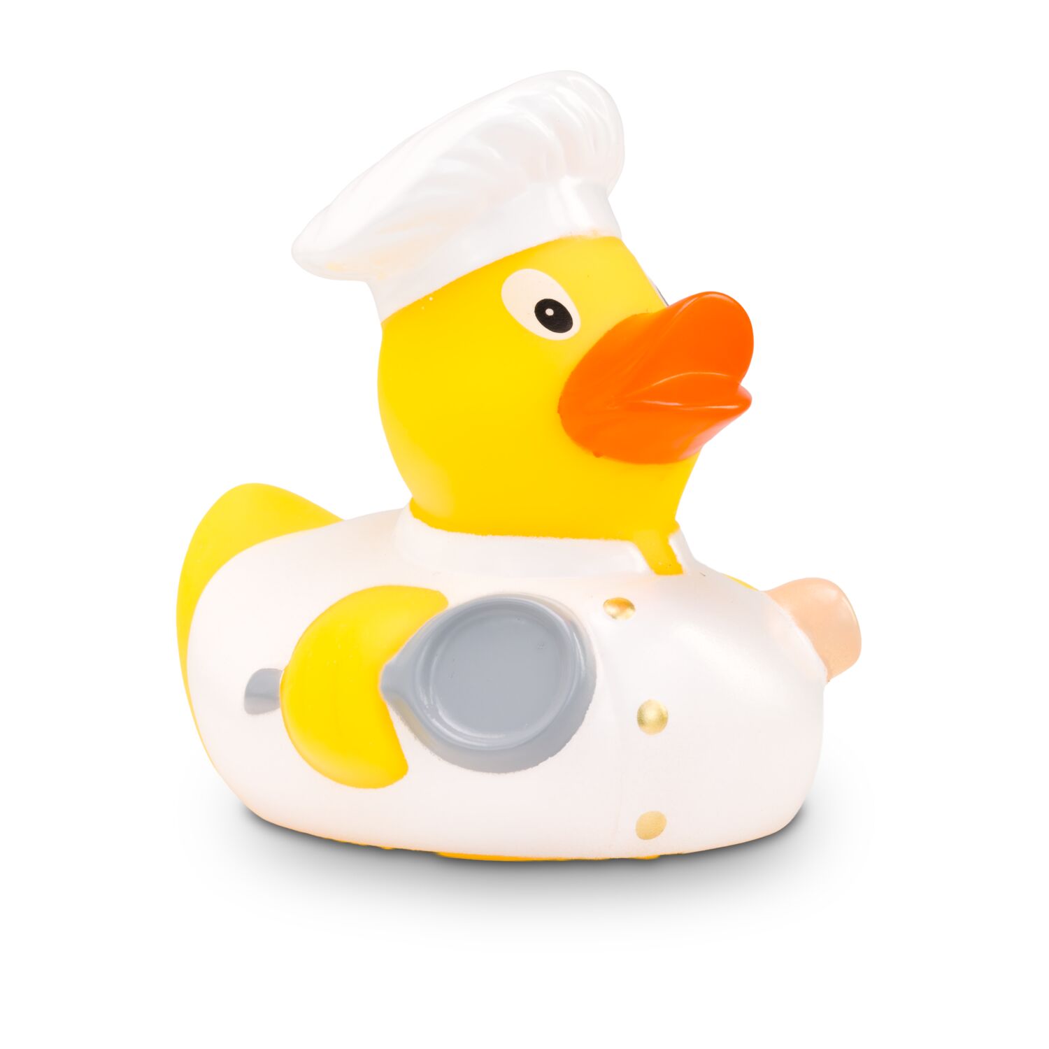 Profi-Köche aufgepasst: Bruno Bratpfanne ist der Meister am Herd. Als Virtuose hat er sich bereits zwei Sterne erkochen können. Sein makelloses, weißes Koch-Outfit inklusive Sternekochmütze lässt ihn professionell wirken. Mit der Bratpfanne unter dem einen und dem Kochlöffel unter dem anderen Flügel erschafft er echte Geschmacksexplosionen. Größe: ca. 8 cm. Inklusive Quietschventil
