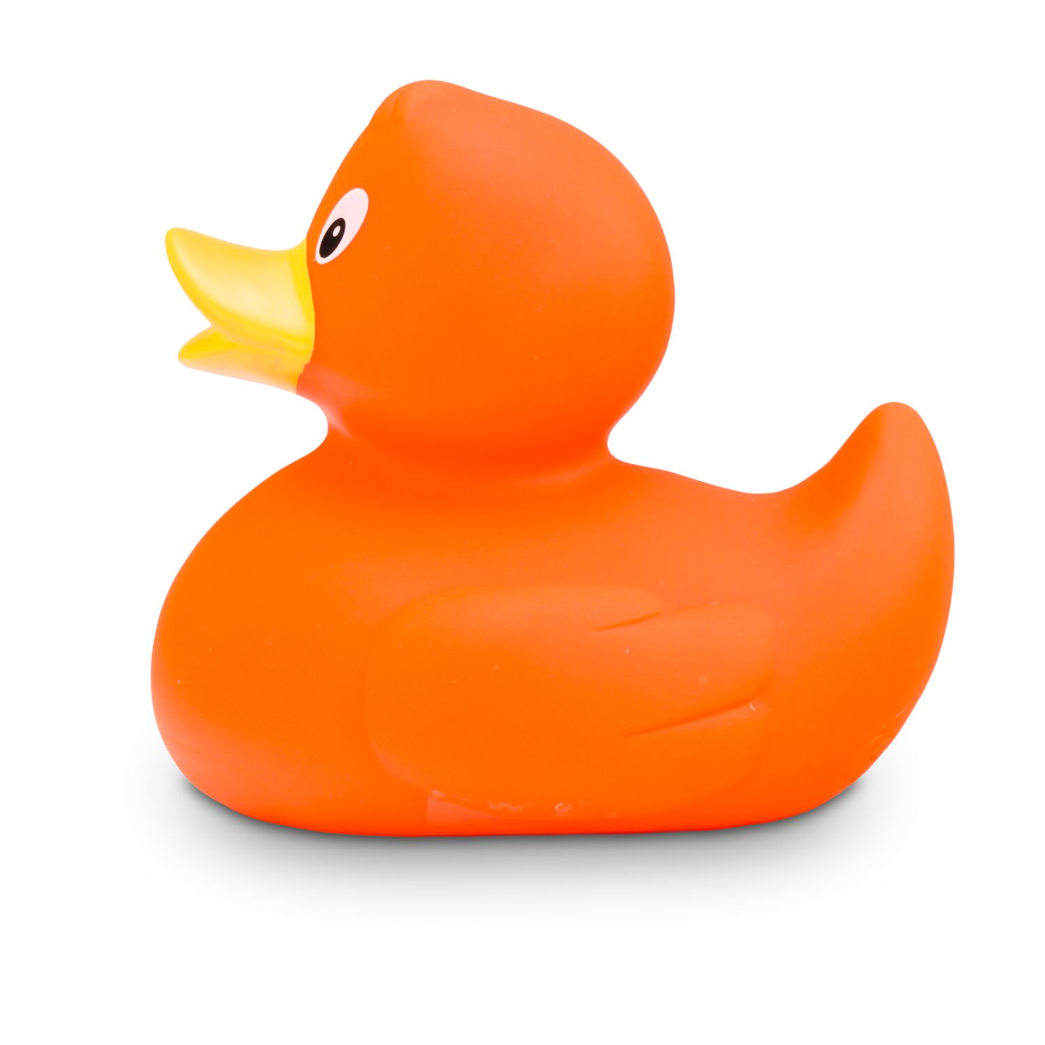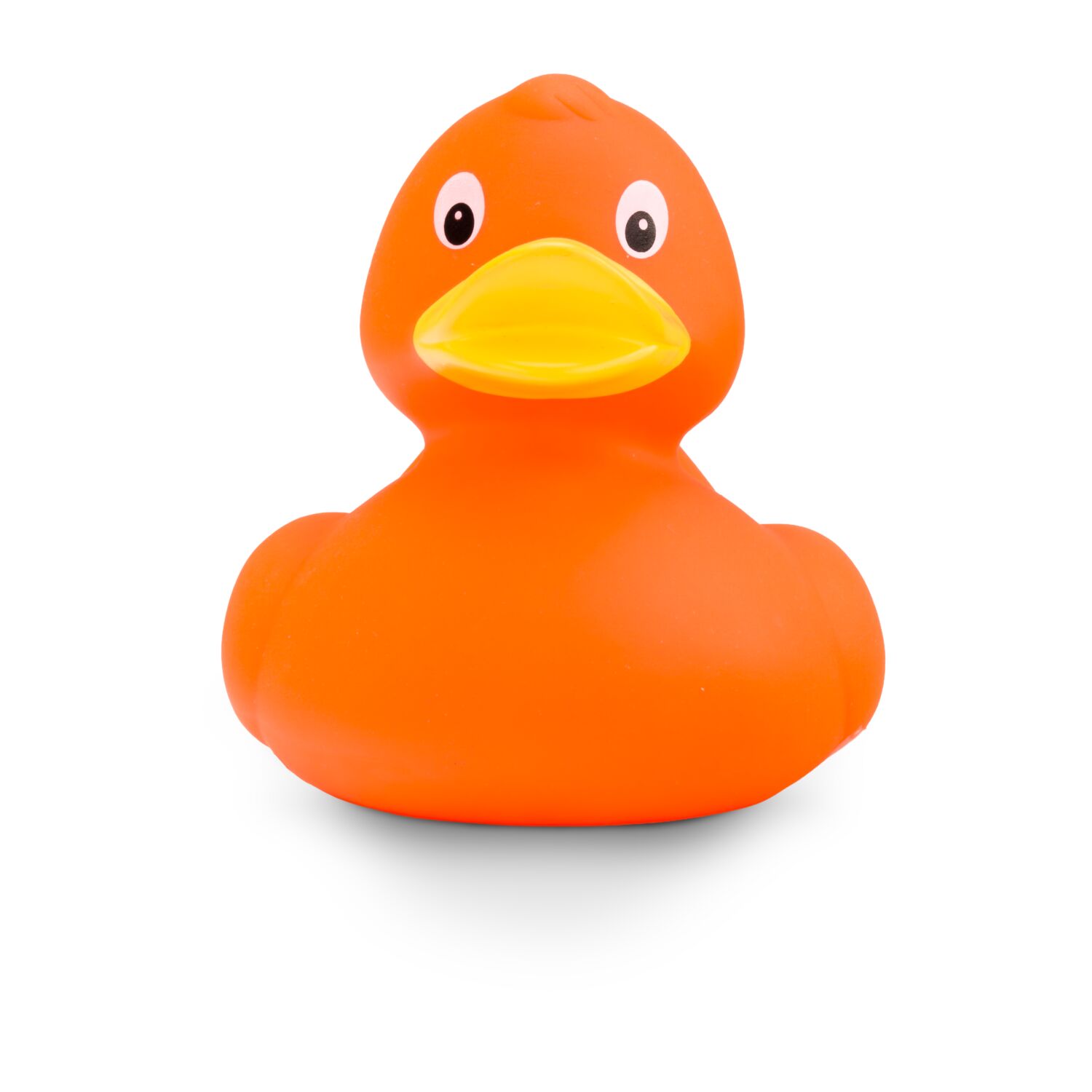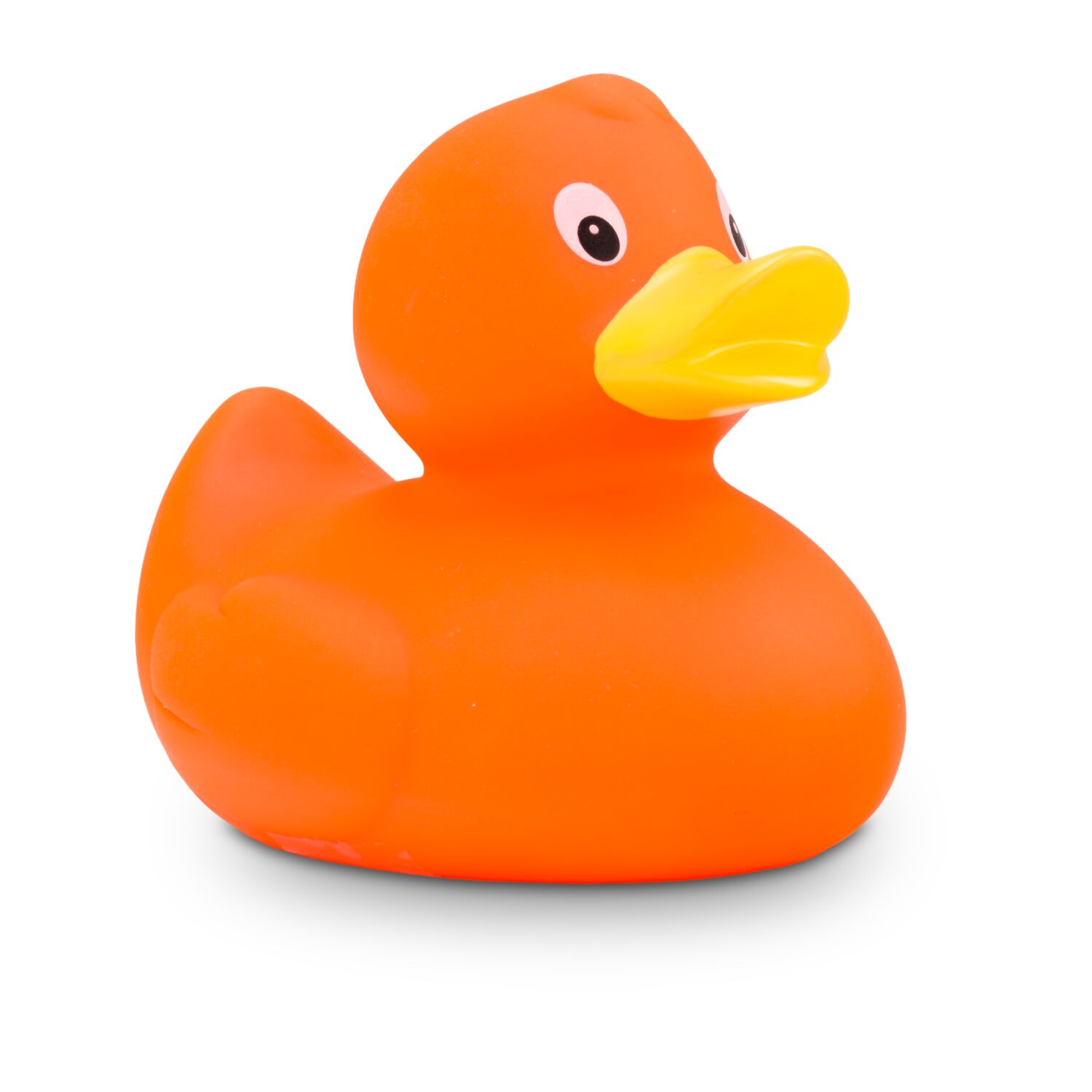 Clementine ist ein warmer Sonnenaufgang in Entengestalt. Die Badeente strahlt in einem knallorangenen Federkleid mit gelbem Schnabel und macht jedem gute Laune. Größe: ca. 8 cm. Inklusive Quietschventil