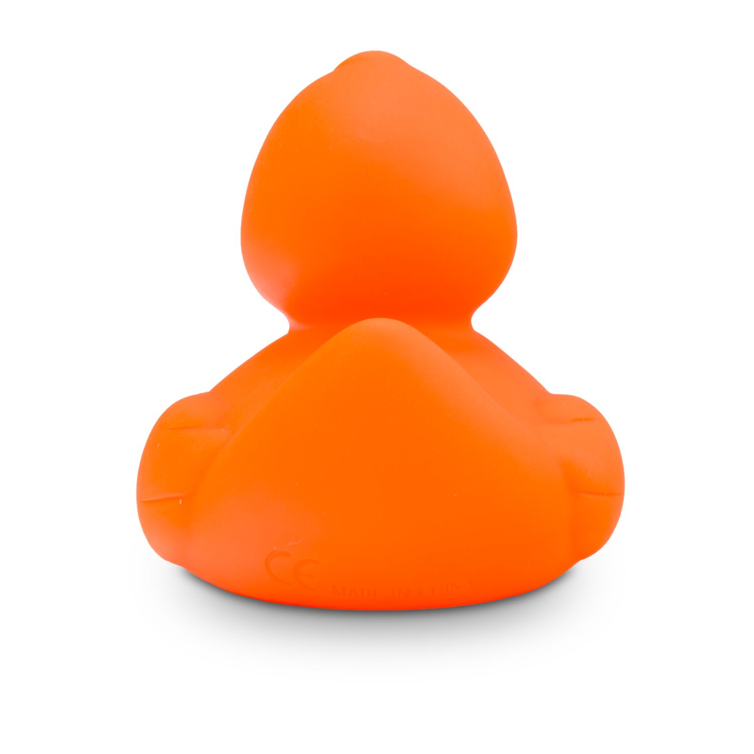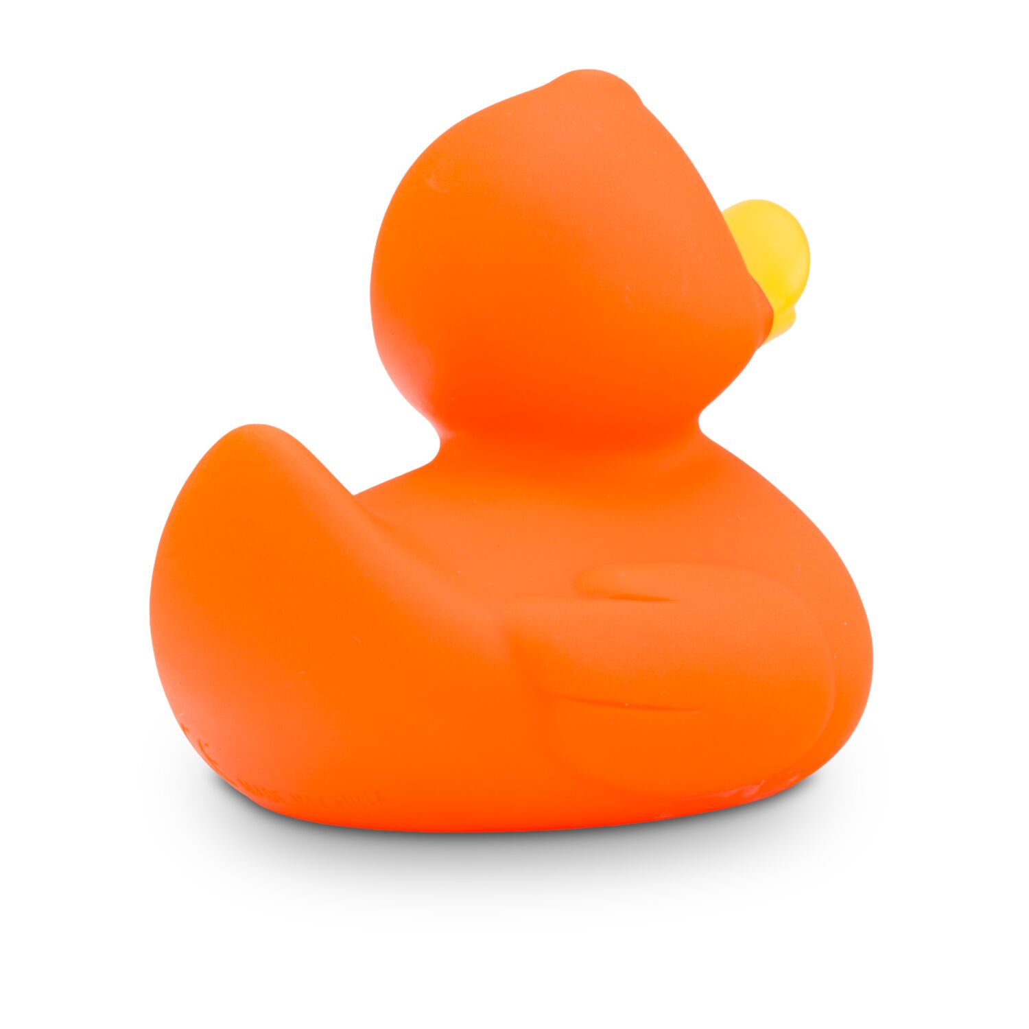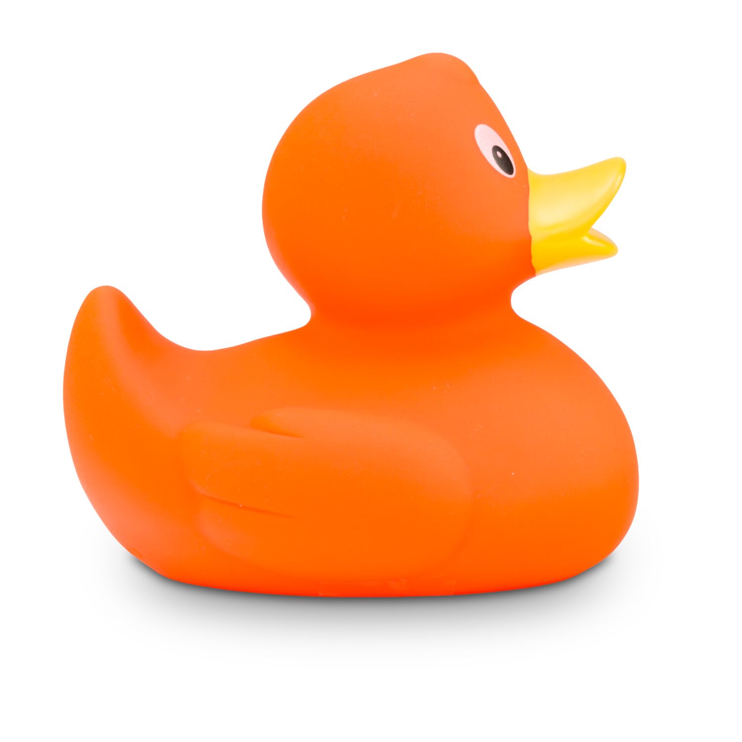 Clementine ist ein warmer Sonnenaufgang in Entengestalt. Die Badeente strahlt in einem knallorangenen Federkleid mit gelbem Schnabel und macht jedem gute Laune. Größe: ca. 8 cm. Inklusive Quietschventil