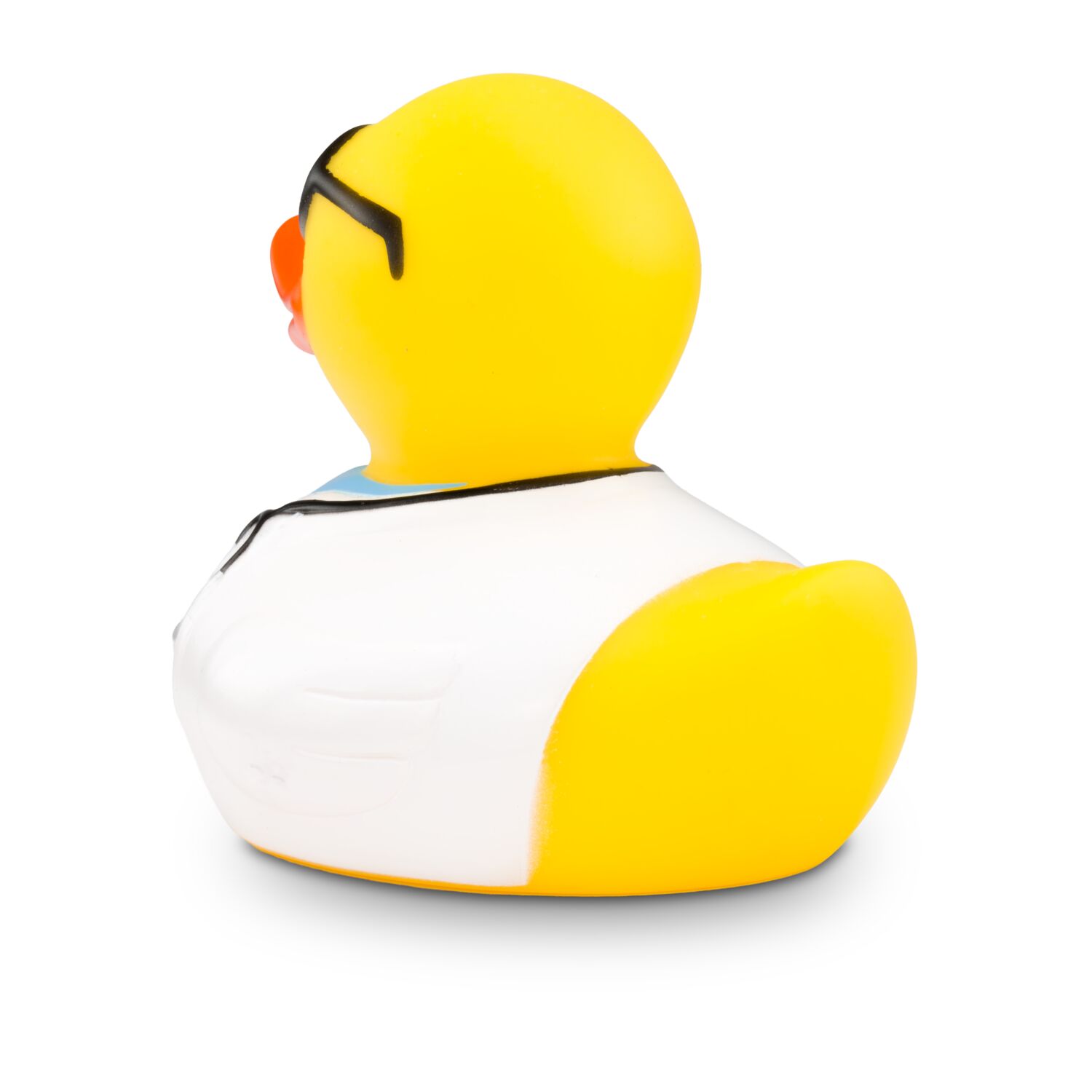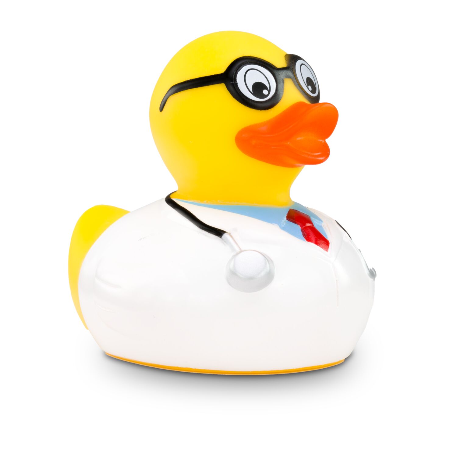 Die kultige Arzt-Quietscheente für die Badewanne. Dr. Dagobert trägt stilecht einen weißen Arztkittel, eine rote Krawatte, ein hellblaues Hemd und eine schwarze Brille. Das Stethoskop hängt einsatzbereit für die nächste Untersuchung um den Hals. Dr. Dagobert kümmert sich gemeinsam mit Medizinstudenten um die Pflege seiner Patienten und sorgt für gute Laune unter den Kollegen im Krankenhaus. Ab und zu praktiziert er auch noch in seiner eigenen Enten-Praxis. Größe: ca. 8 cm. Inklusive Quietschventil