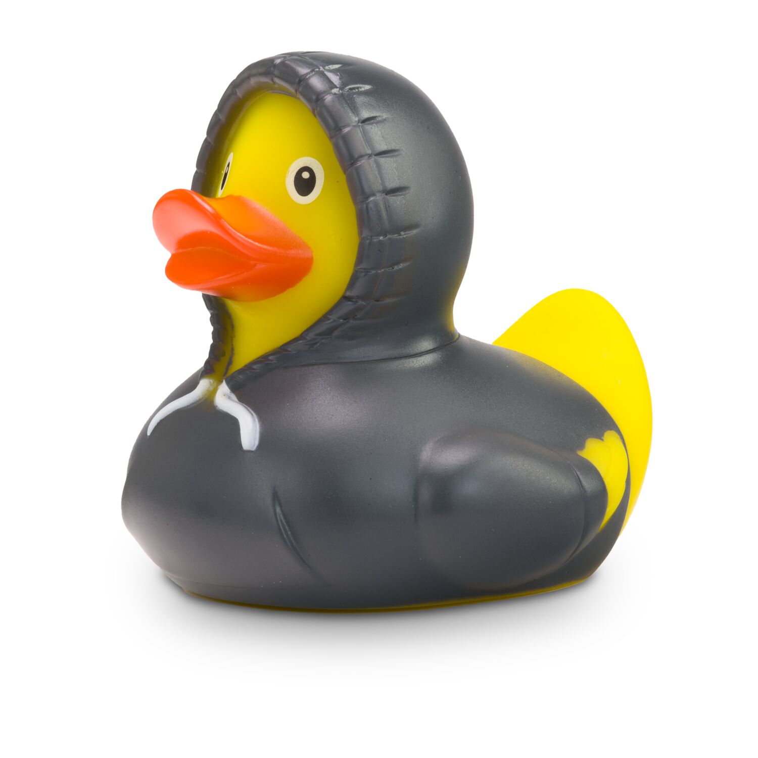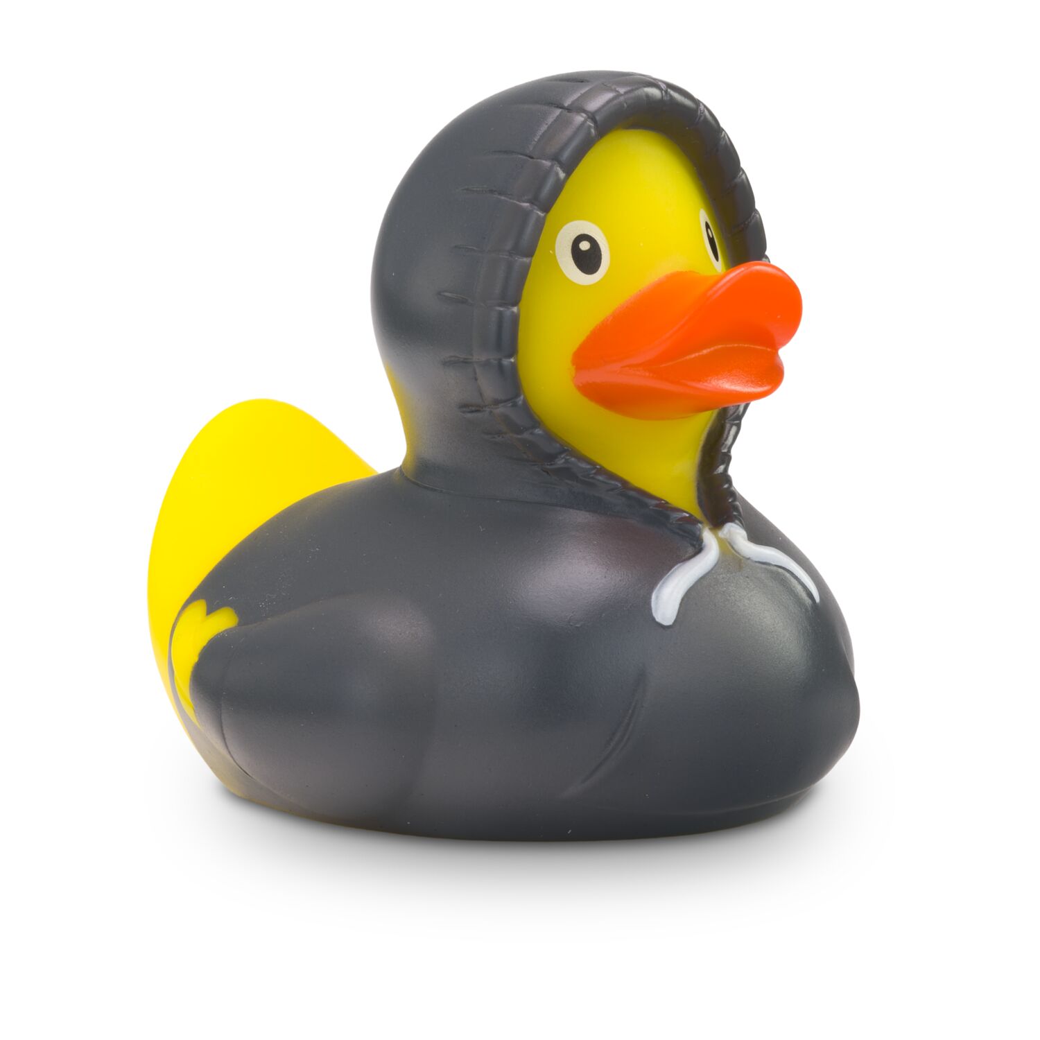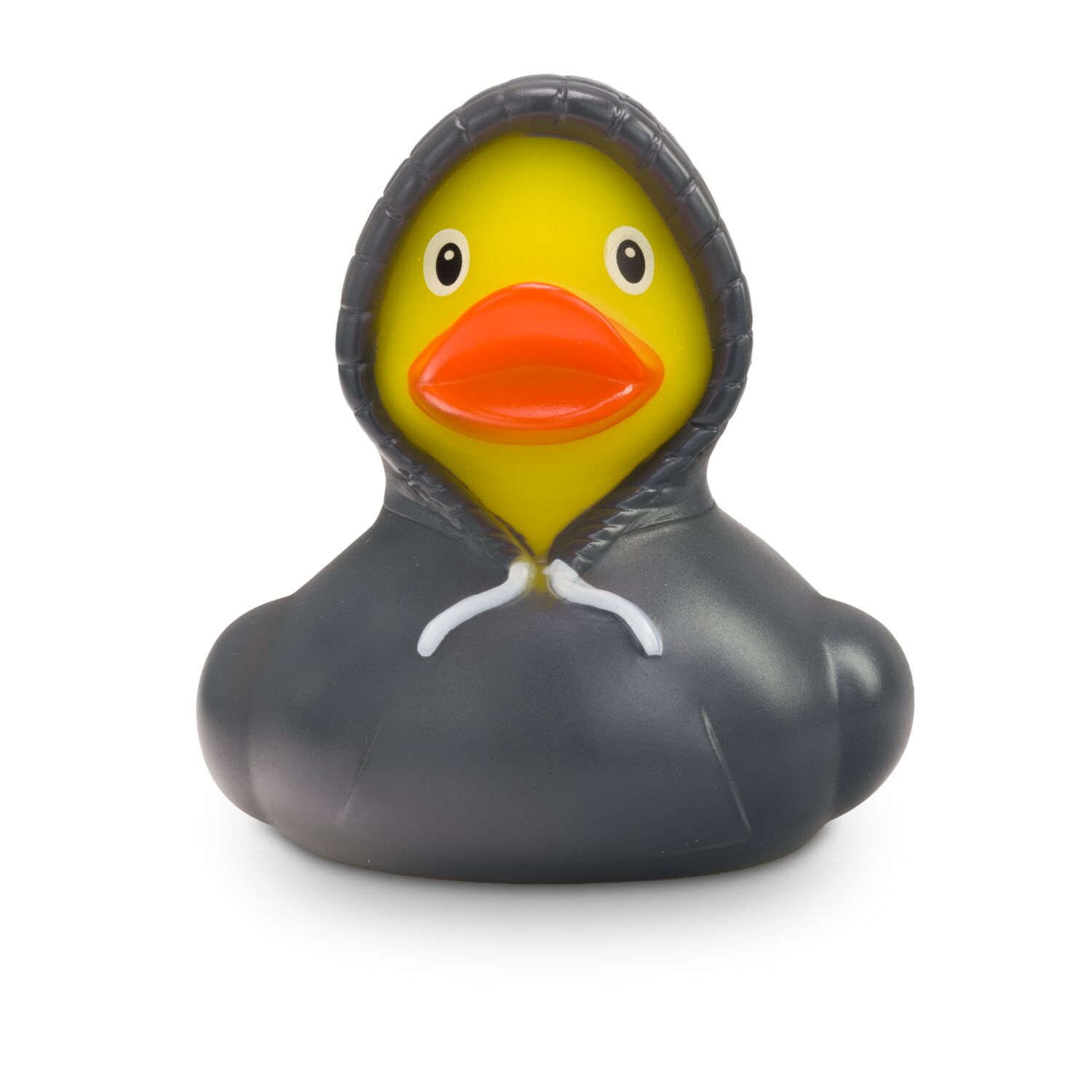 Hektor Hoodie ist die jugendliche Ente mit dem coolen Street-Flair. Er trägt einen gemütlichen grauen Kapuzenpullover, in dem eine Kordel eingearbeitet ist. Der Brustbereich eignet sich hervorragend für einen Druck. Größe: ca. 8 cm. Inklusive Quietschventil