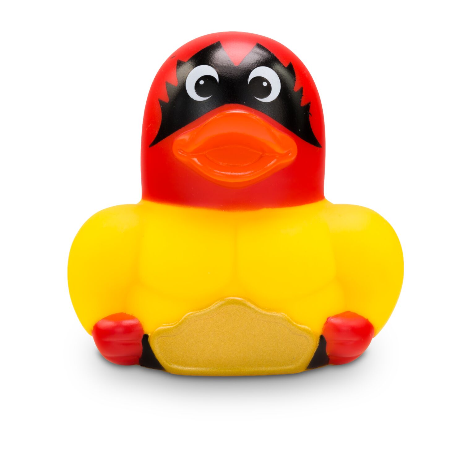 Hulk Hammerfaust bleibt ungeschlagen. Der muskulöse Wrestling-König hält den goldenen Titelgürtel stolz in den Flügeln und blickt mit seiner schwarzen Maske mutig in die Augen seiner Gegner. Fight! Größe: ca. 8 cm. Inklusive Quietschventil