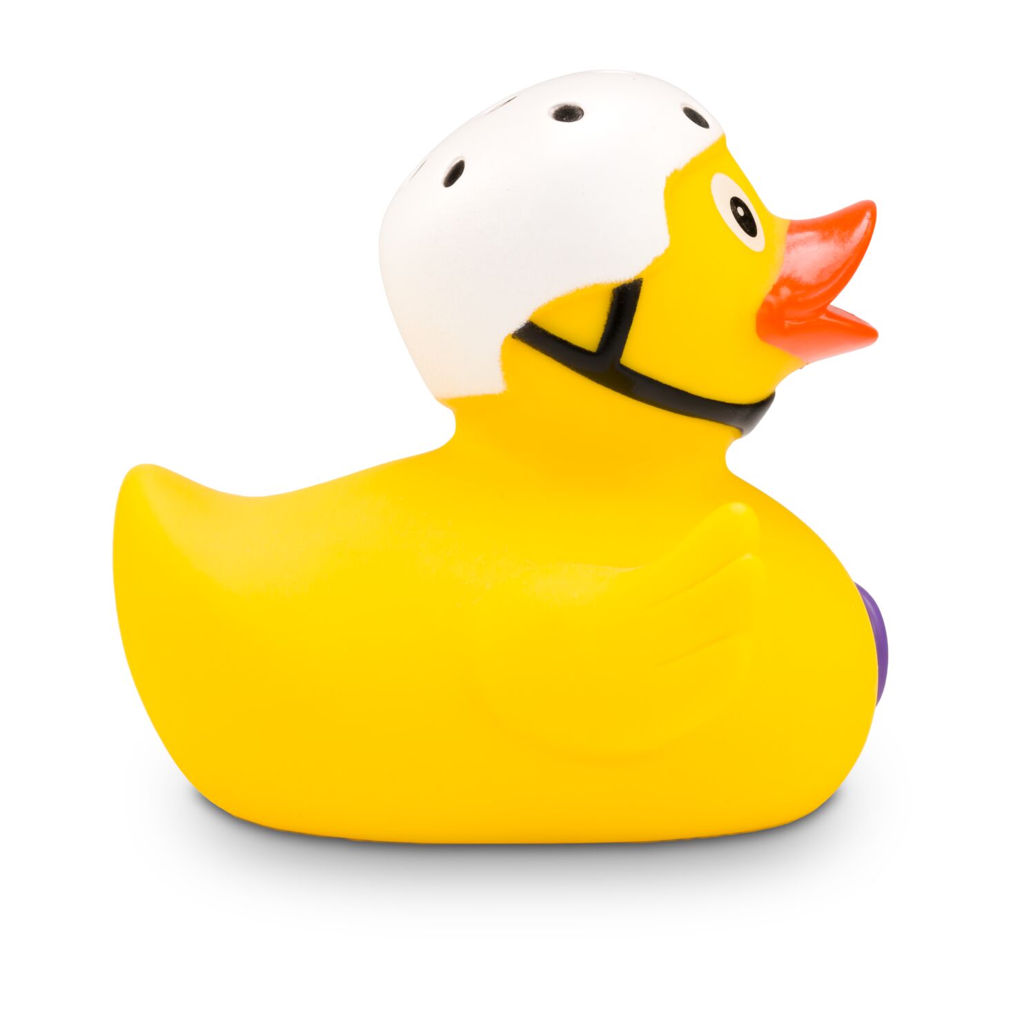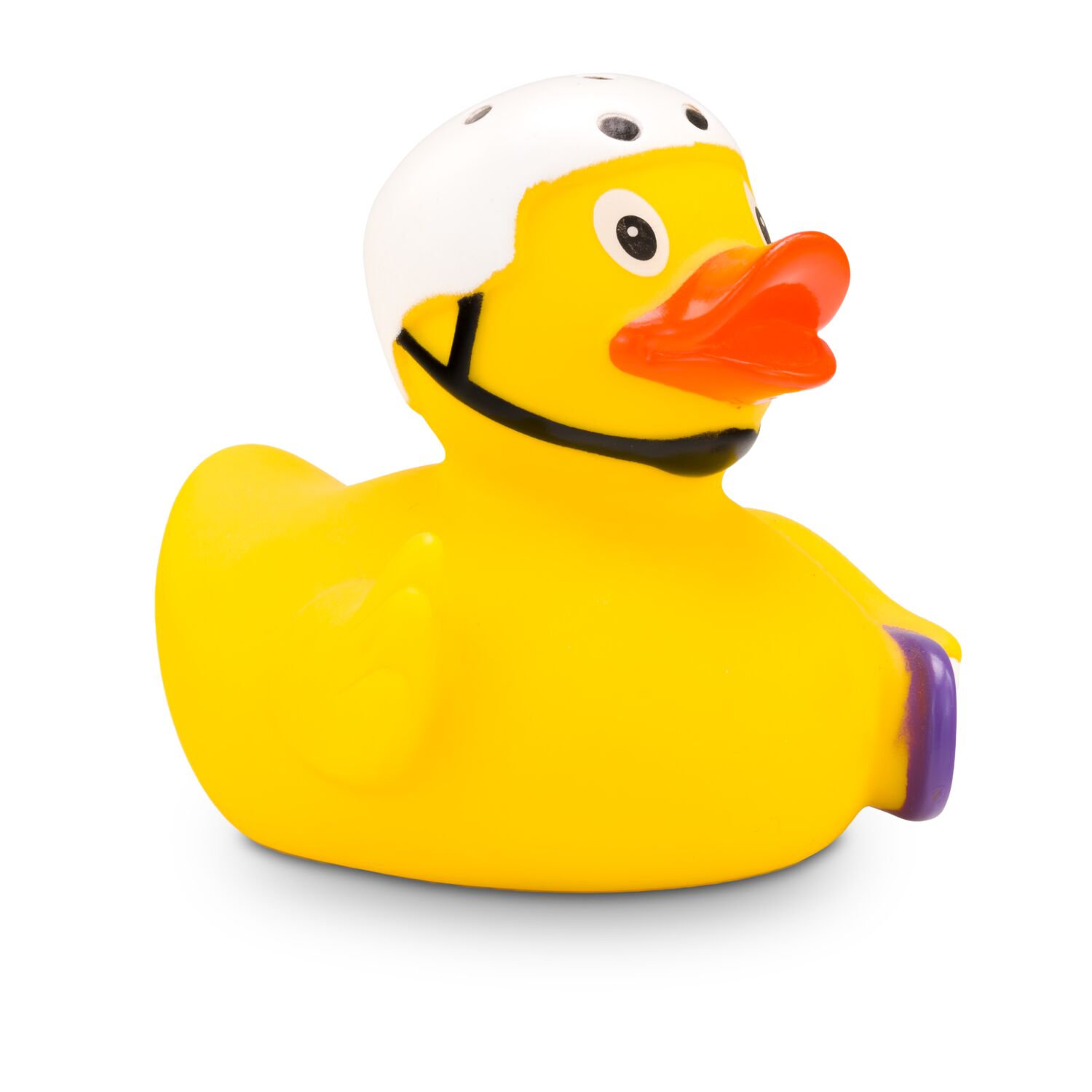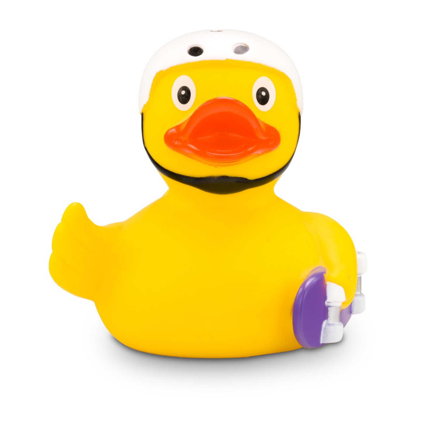 Kai Kickflip ist eine besonders sportliche Badeente, die mit ihrem coolen, weißen Helm, lila Skateboard und dynamischen Look Ihre Badewanne in eine Half-Pipe verwandelt. Ideal als kreatives Werbegeschenk für Sportevents, Jugendkampagnen oder Marken, die Bewegung und Spaß verkörpern. Die Skater-Badeente bleibt garantiert in Erinnerung und sorgt für gute Laune bei Jung und Alt. Größe: ca. 8 cm. Inklusive Quietschventil