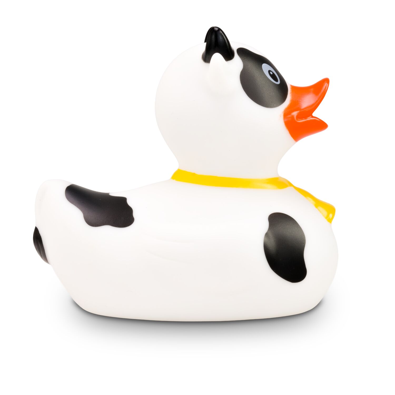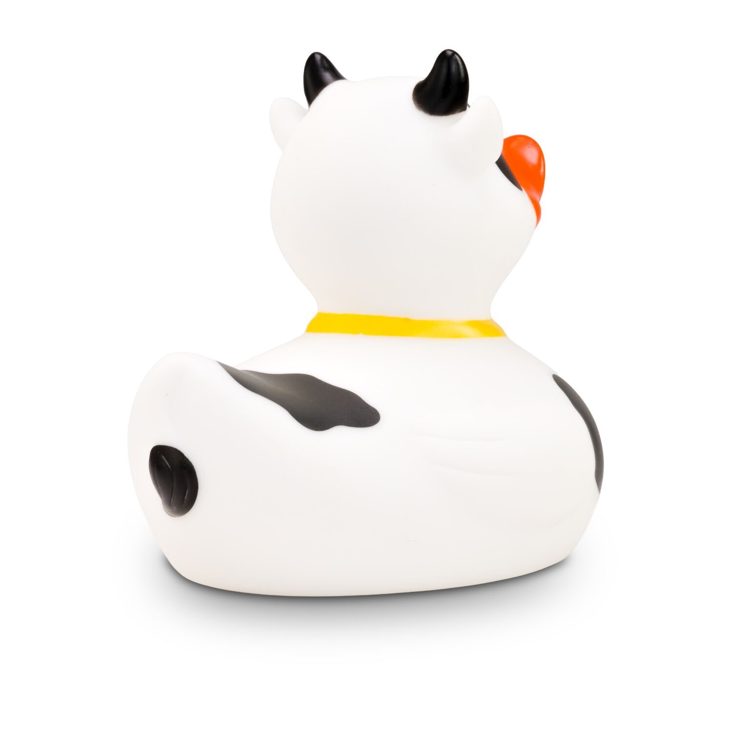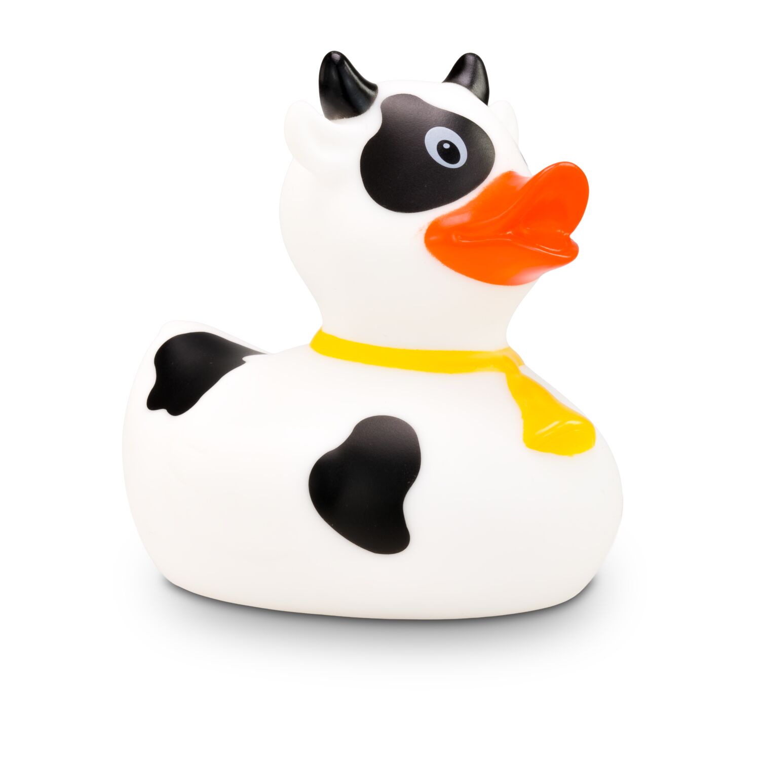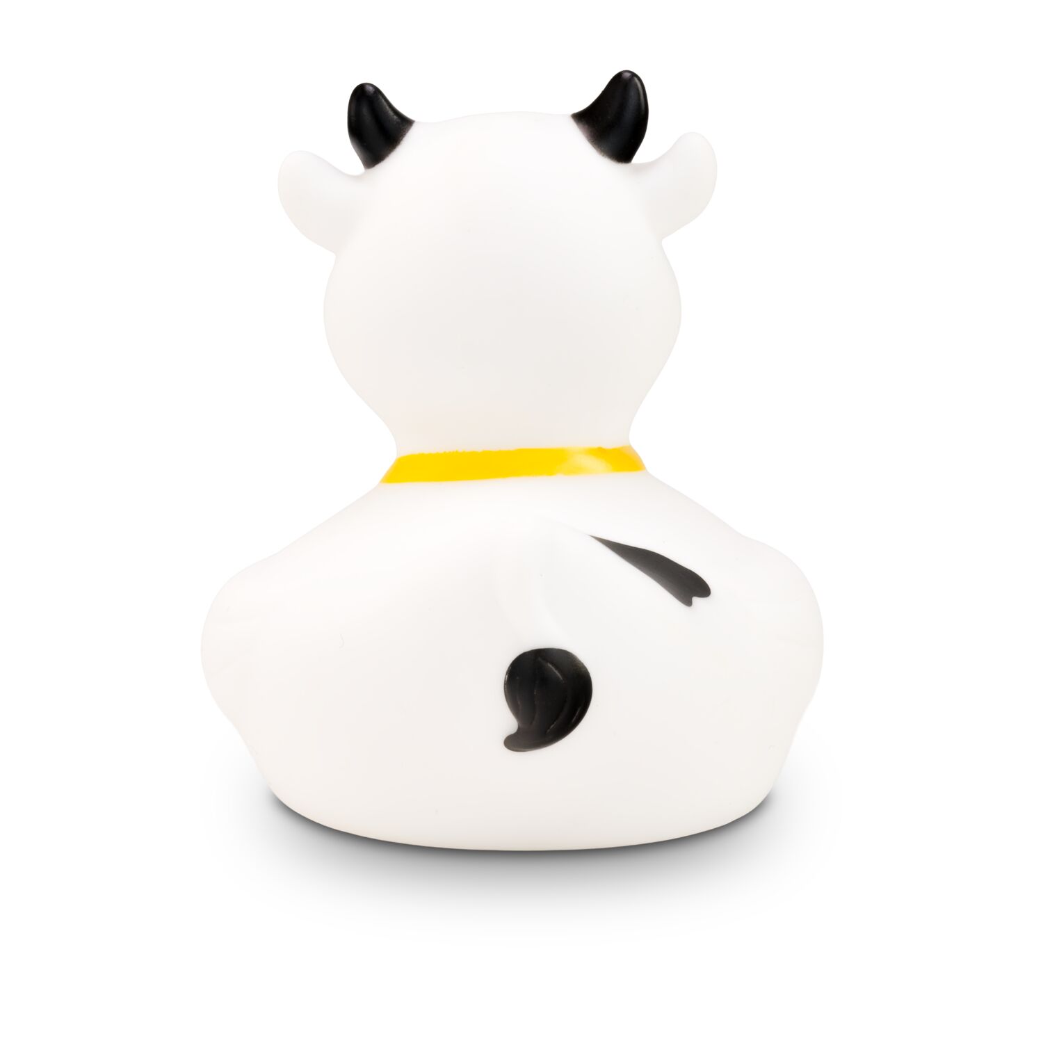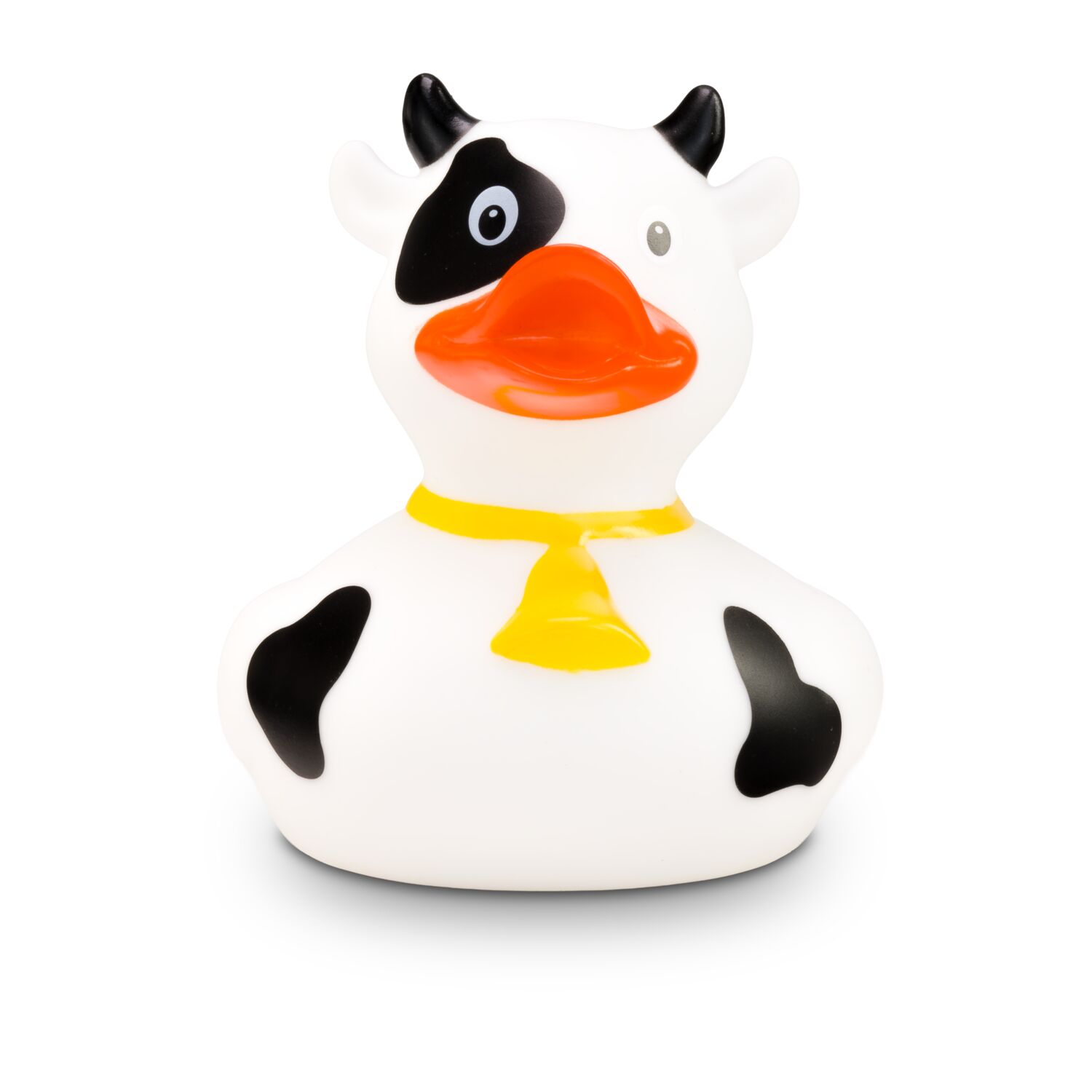 MUHH! Warum denn immer nur Badeenten in der Badewanne? Hier kommt Karla Kuh als Quietschetier. Ihr weißer Körper ist mit schwarzen Flecken versehen. Die schwarzen Hörner und die goldene Glocke um den Hals machen ihren Kuh-Look perfekt. Größe: ca. 8 cm. Inklusive Quietschventil