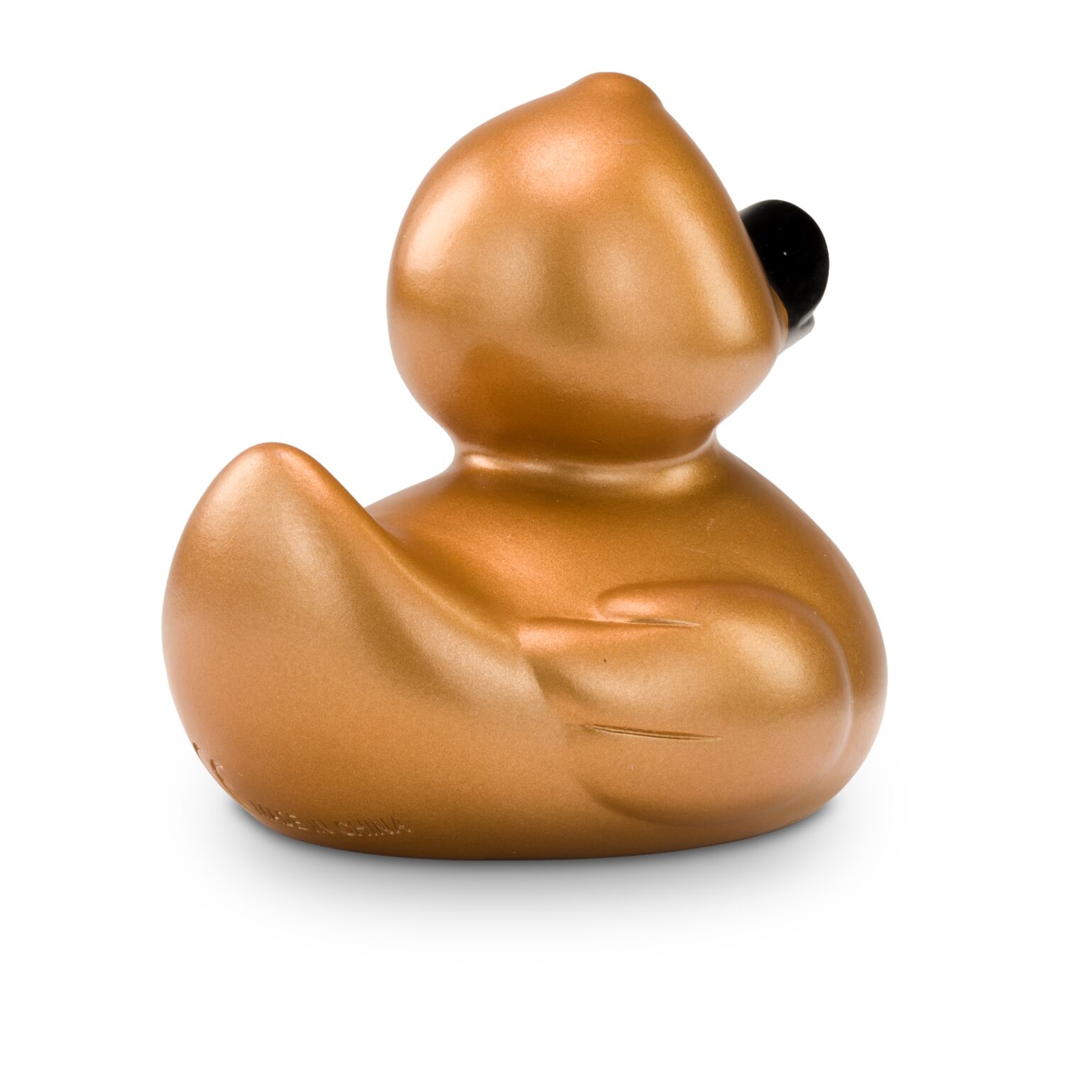 Kira strahlt mit ihrem schimmernden Gefieder eine ausgesprochen edle Wärme aus. Die Badeente verbindet mit ihrem metallisch kupferfarbenem Federkleid, dem eleganten, schwarzen Schnabel und ihrer klassischen Körperform zeitlose Eleganz mit einem modernen Look. Diese Badeente setzt ein edles Highlight im Badezimmer und begeistert alle, die klassische Badeenten mit außergewöhnlichem Glanz lieben. Sie hat noch kleine und große Geschwister, auch in anderen Farben. Größe: ca. 8 cm. Inklusive Quietschventil