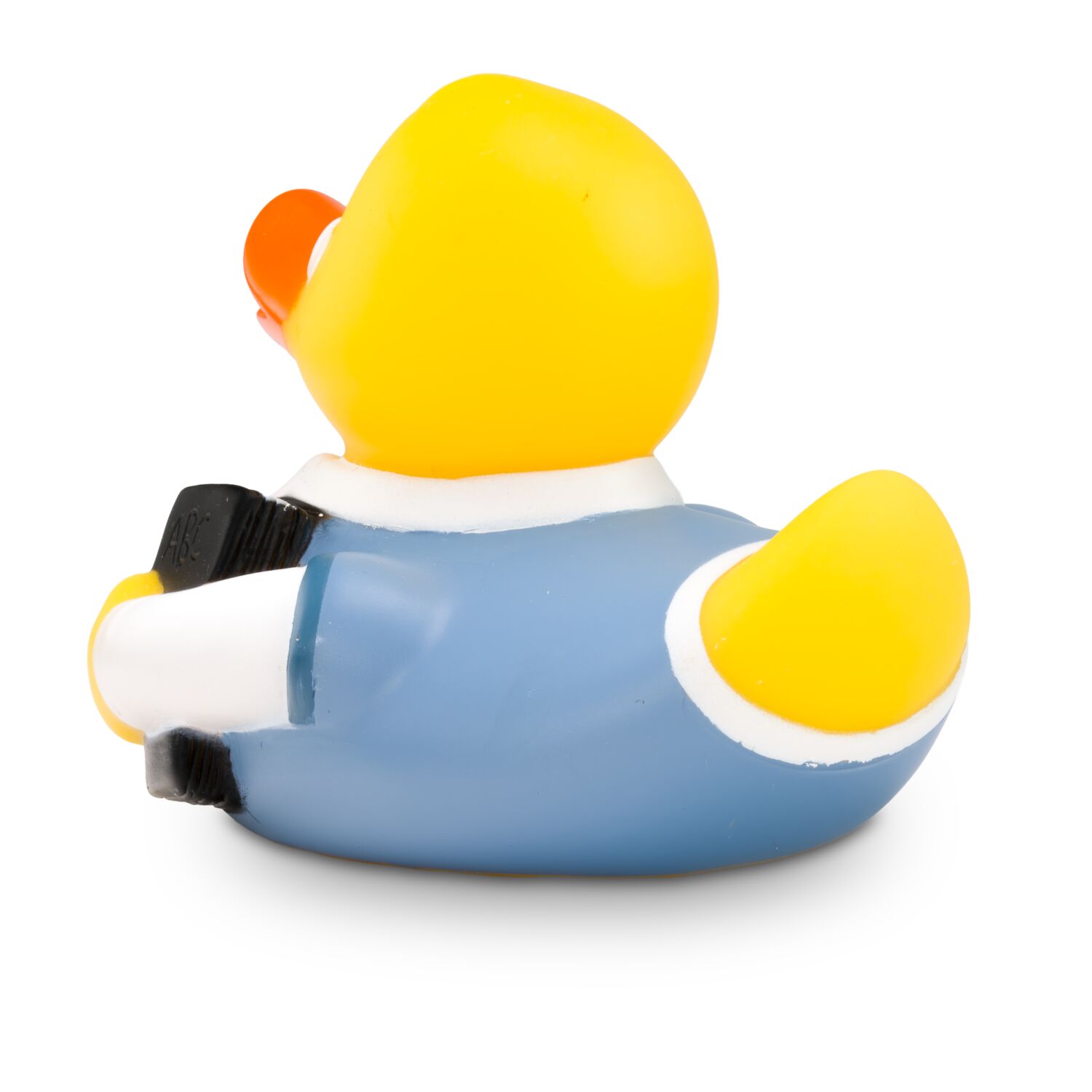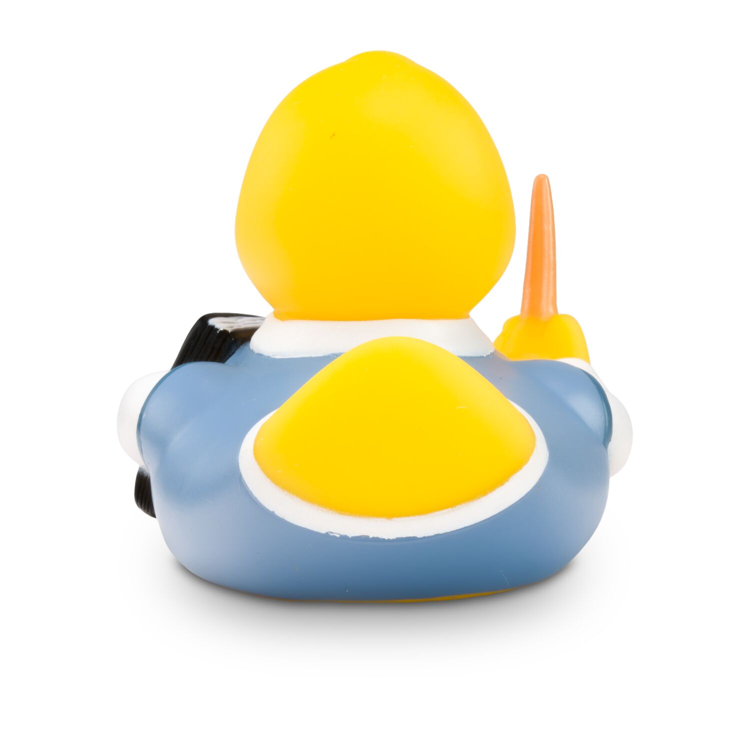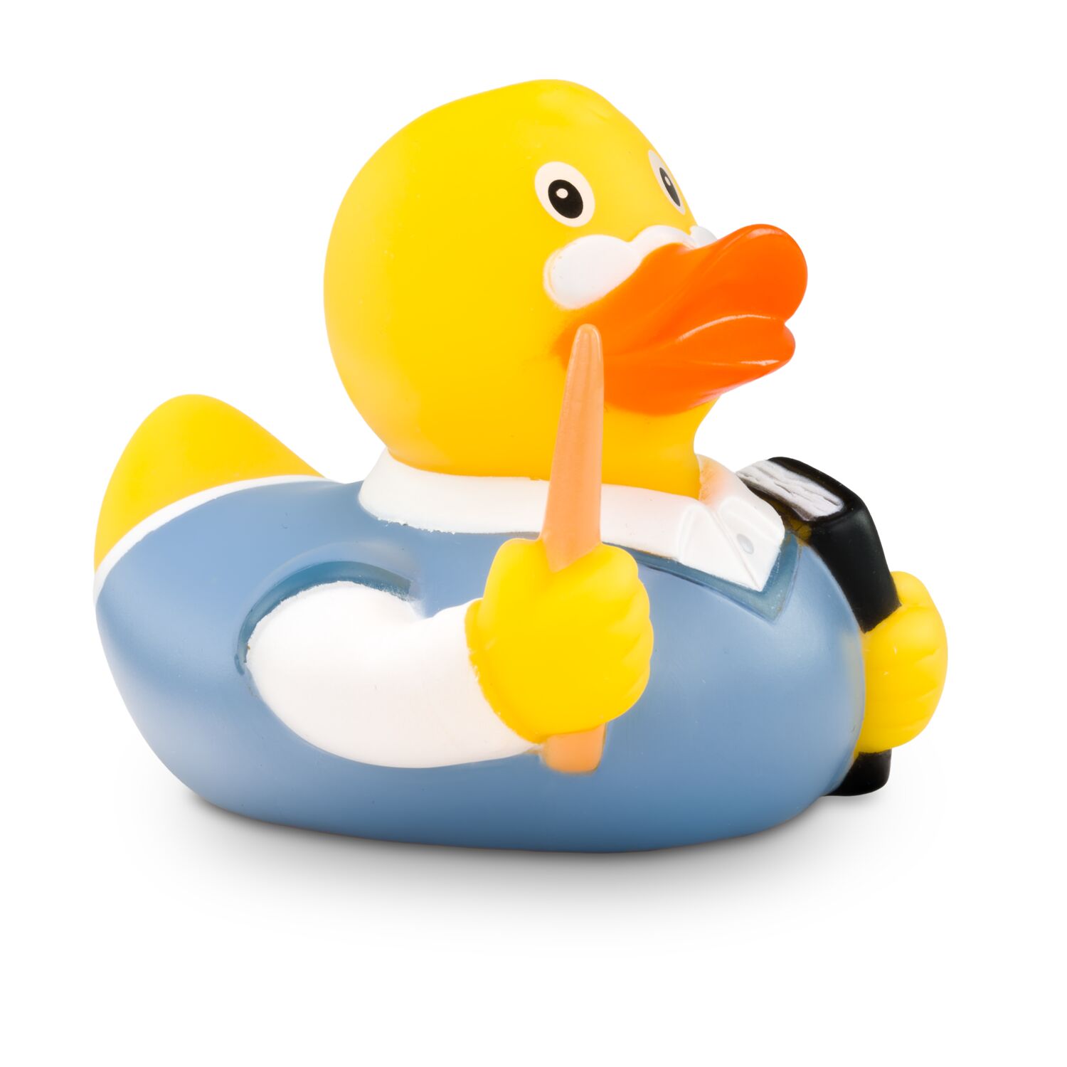 Leo Lehrer ist der Lieblingslehrer aller Kinder in der Enten-Schule. Klassisch mit Brille, blauem Oberteil, weißem Hemdkragen, Lehrbuch und Zeigestock sieht er sehr streng aus. Dabei gibt er den Entenkindern mit viel Charme und Geduld das Wissen seiner Generation über den Ententeich weiter. Größe: ca. 8 cm. Inklusive Quietschventil