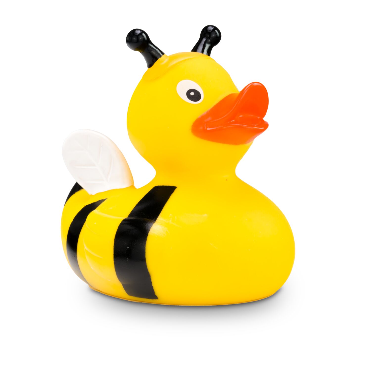Badeente Susi Summ wäre viel lieber eine Biene als eine Ente. So summt sie fröhlich durchs Badezimmer. Mit schwarzen Streifen, kleinen Antennen und weißen Flügeln ist die kleine Honigbienen-Ente der Hingucker für jedes Schaumbad und sorgt für gute Laune bei Naturfreunden und Bienenliebhabern. Größe: ca. 8 cm. Inklusive Quietschventil