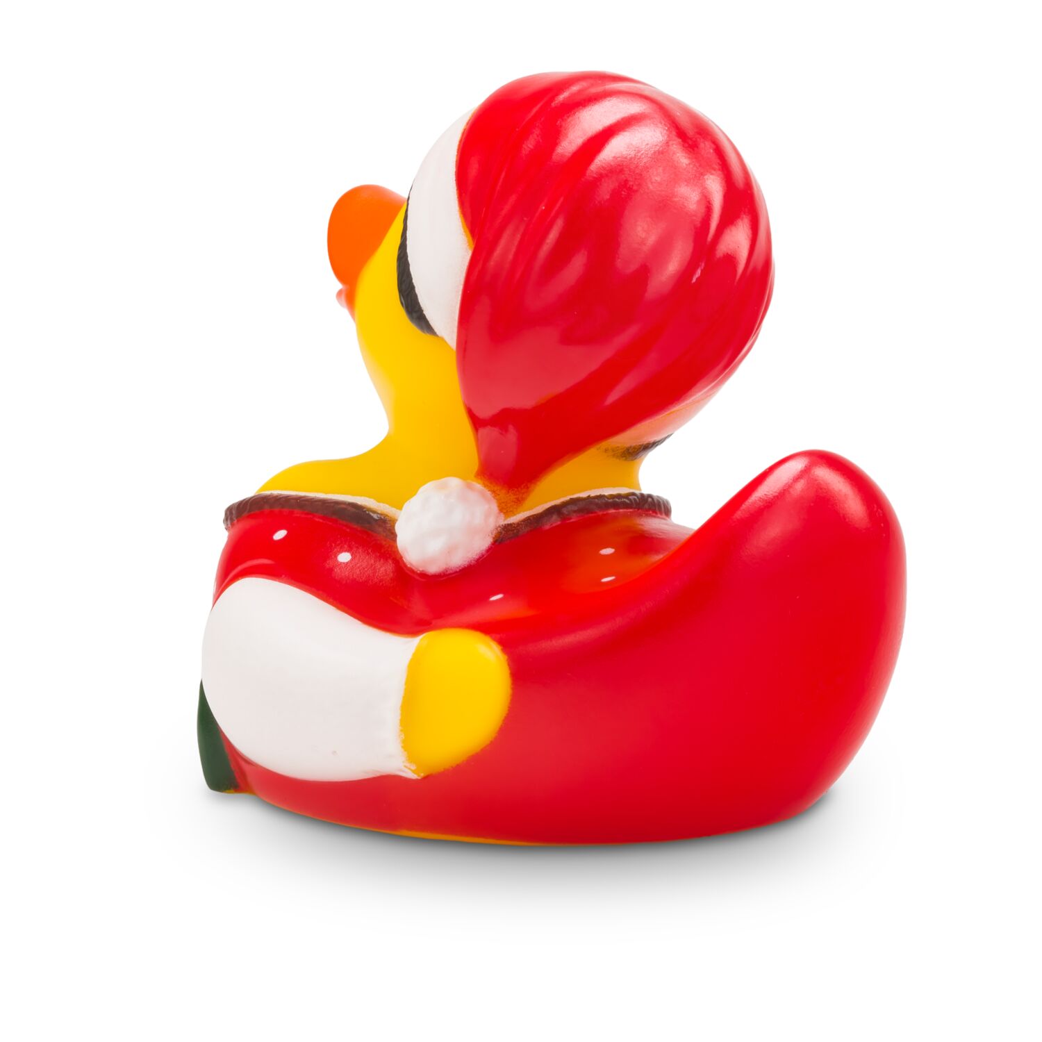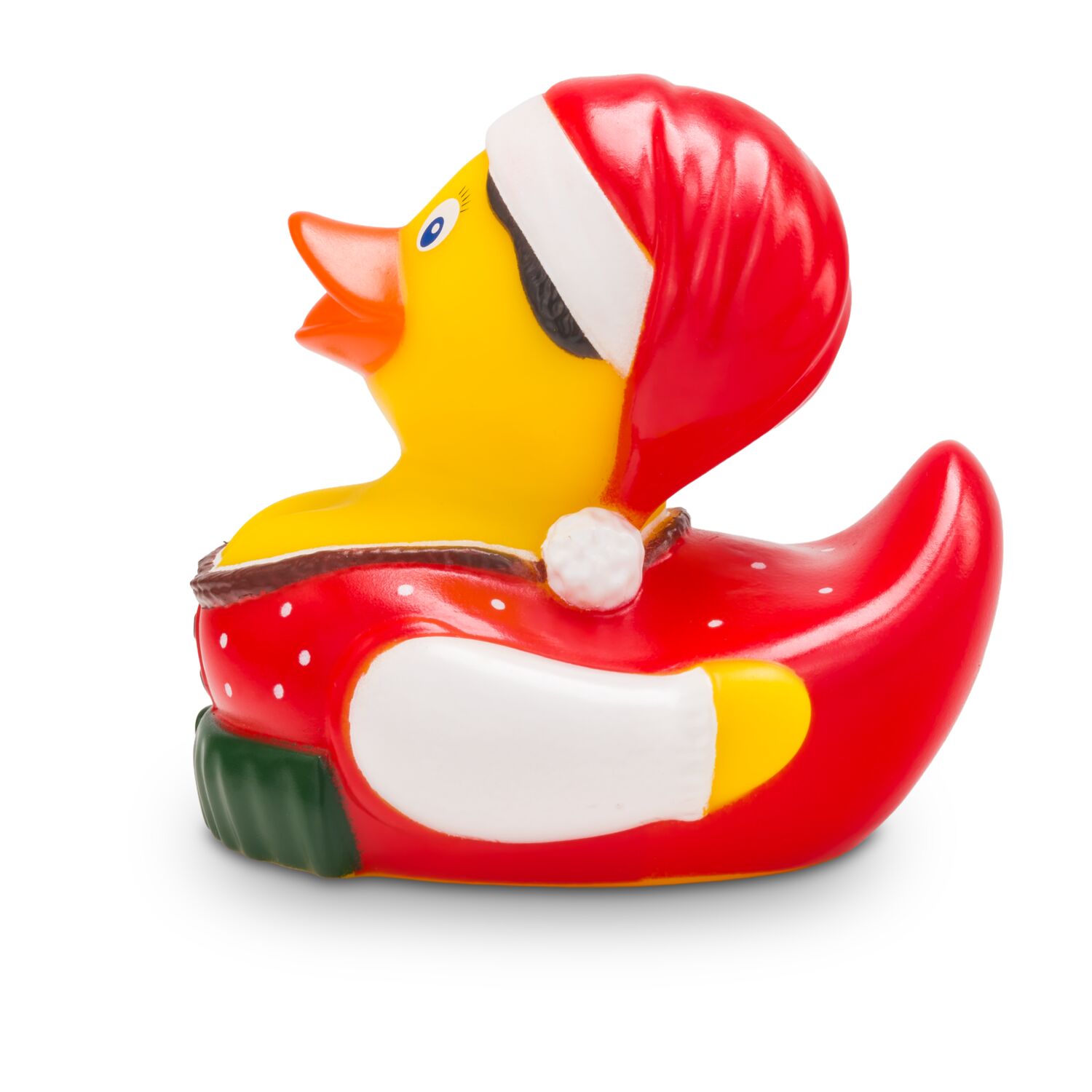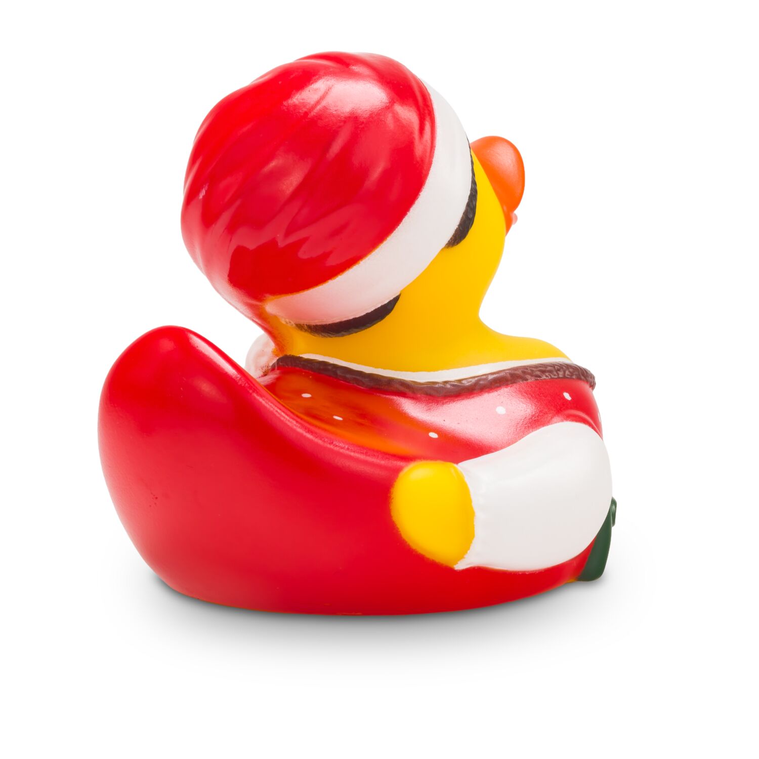 Theresa Trachtenherz lebt für die alpenländischen Trachtenfeste - selbst an Weihnachten. Sie trägt eine traditionelle rote Tracht mit weißen Punkten und eine Schürze in Dunkelgrün, dazu eine weiße Trachtenbluse mit Puffärmeln und eine weihnachtliche Zipfelmütze. Die perfekte Ente, um auch an Weihnachten an bayerische, tiroler oder südtiroler Volksfeste zu erinnern! Größe: ca. 8 cm. Inklusive Quietschventil