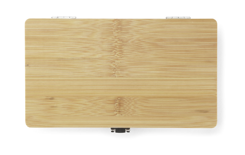 MAD ist ein Werkzeugset in einem Bambuskoffer. Das Set enthält: einen Schraubendreher, zehn verschiedene Bits, eine Verlängerung, vier Steckschlüssel (7 mm, 8 mm, 9 mm und 10 mm), drei Präzisionsschraubendreher und einen Tapetenschneider. Das Etui abschließbar mit Druckknopfverschluss.